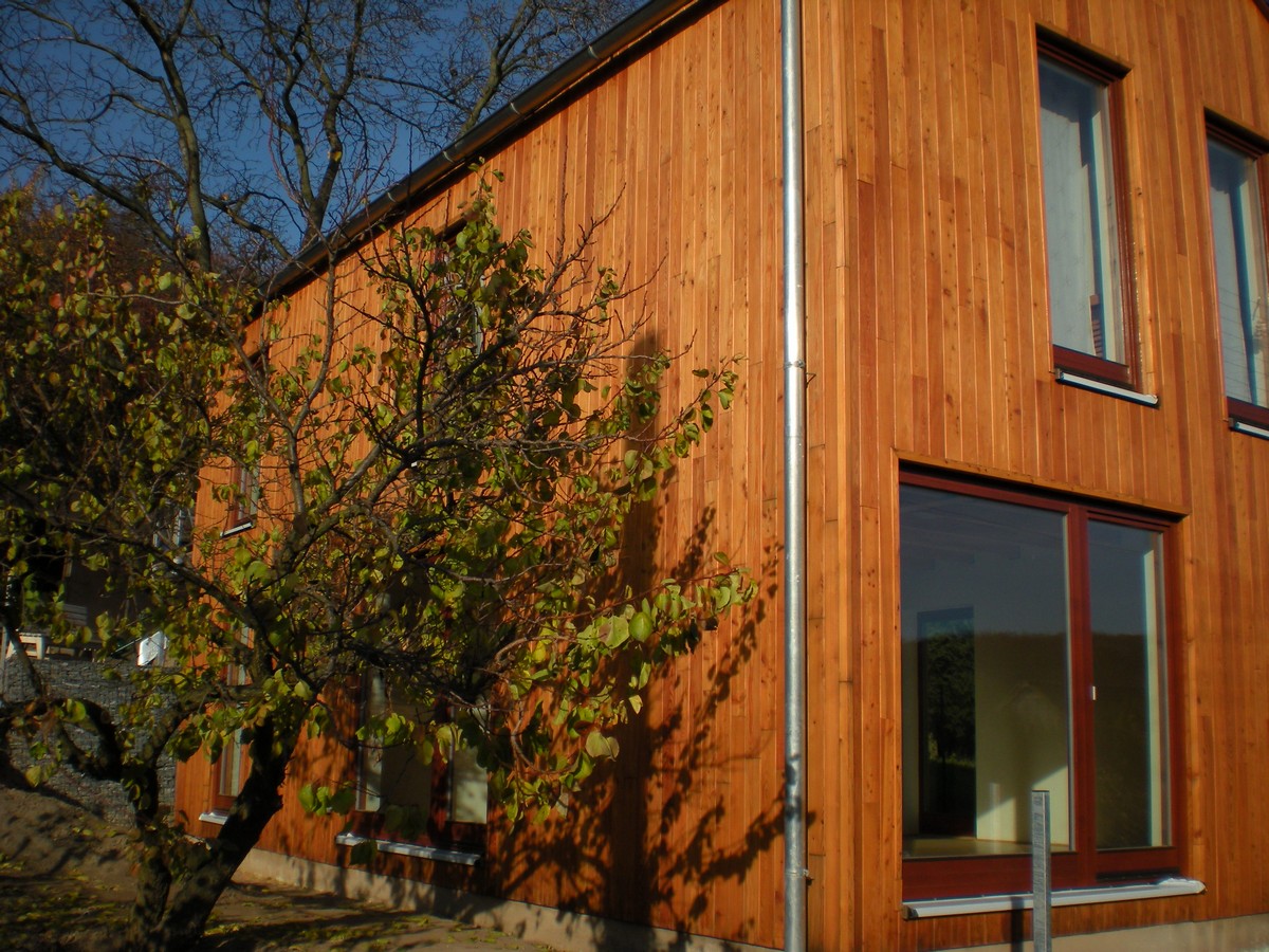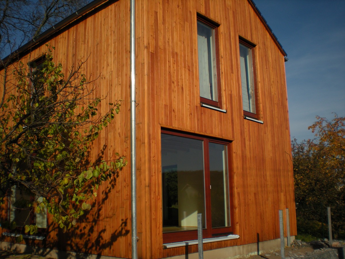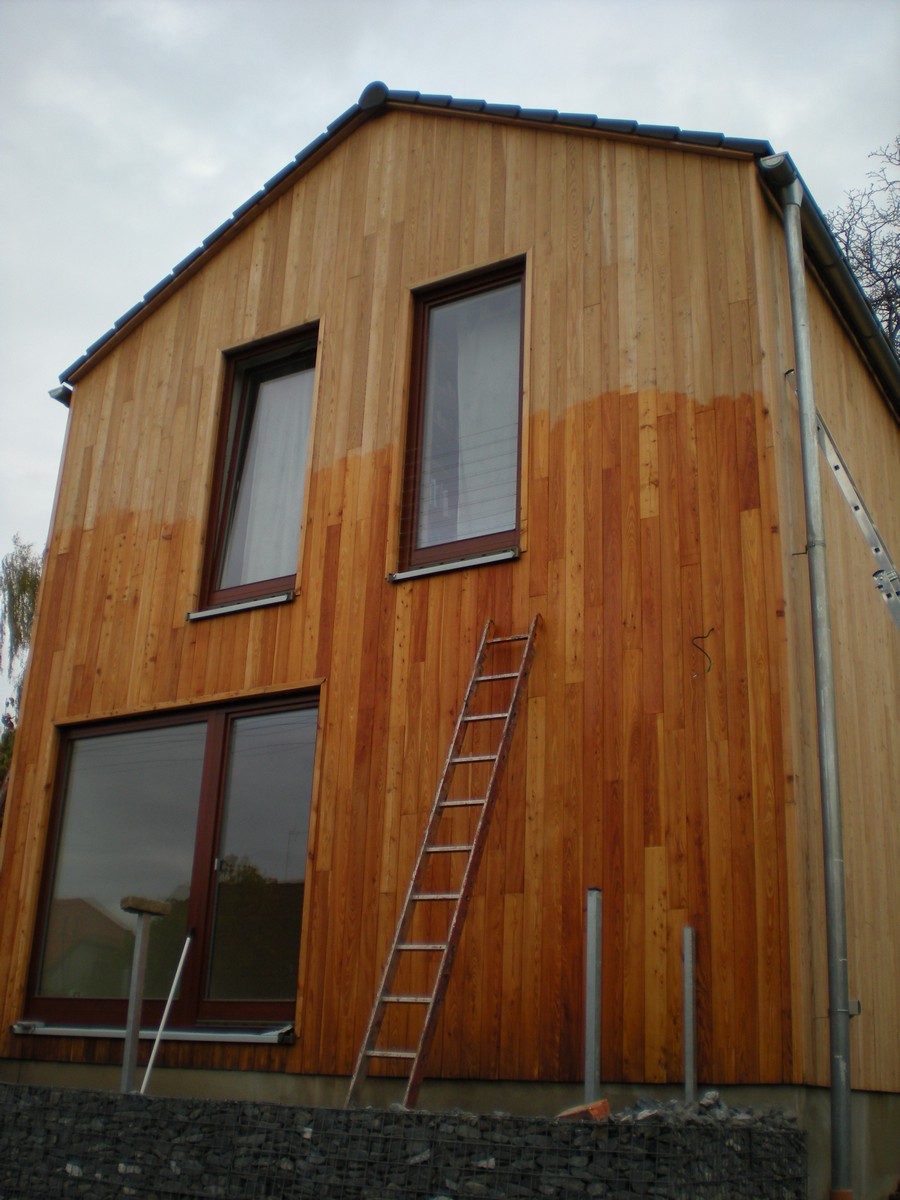 Celkové obroušení fasády, penetrace a nátěr lazurou firmy Tikkurila