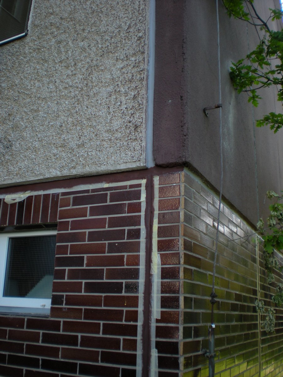 Demontáž starých spár, vypěnění, kompletní oblepení spáry, tmel Den Braven