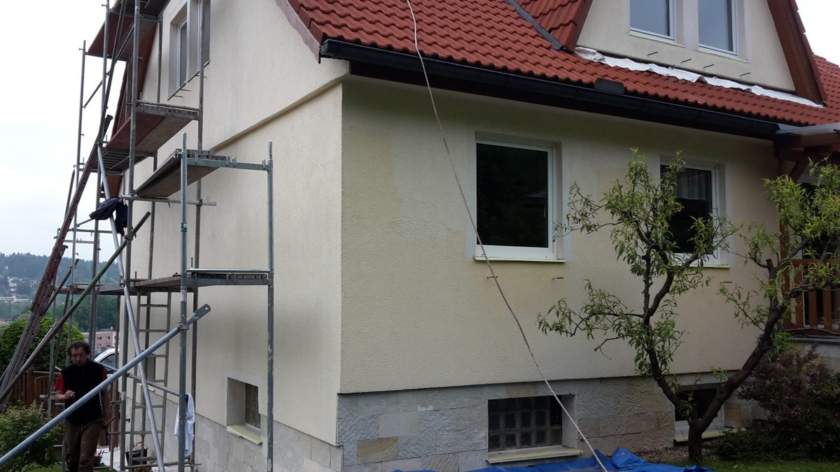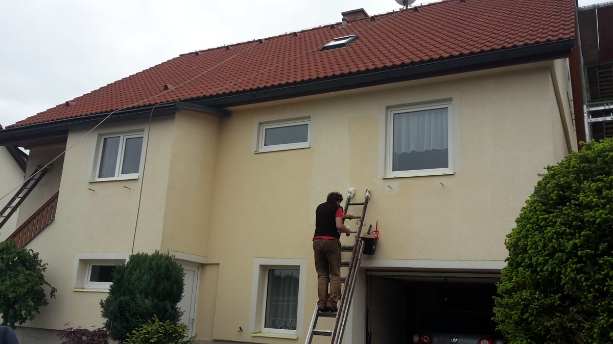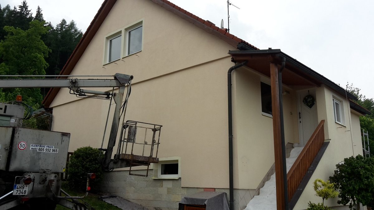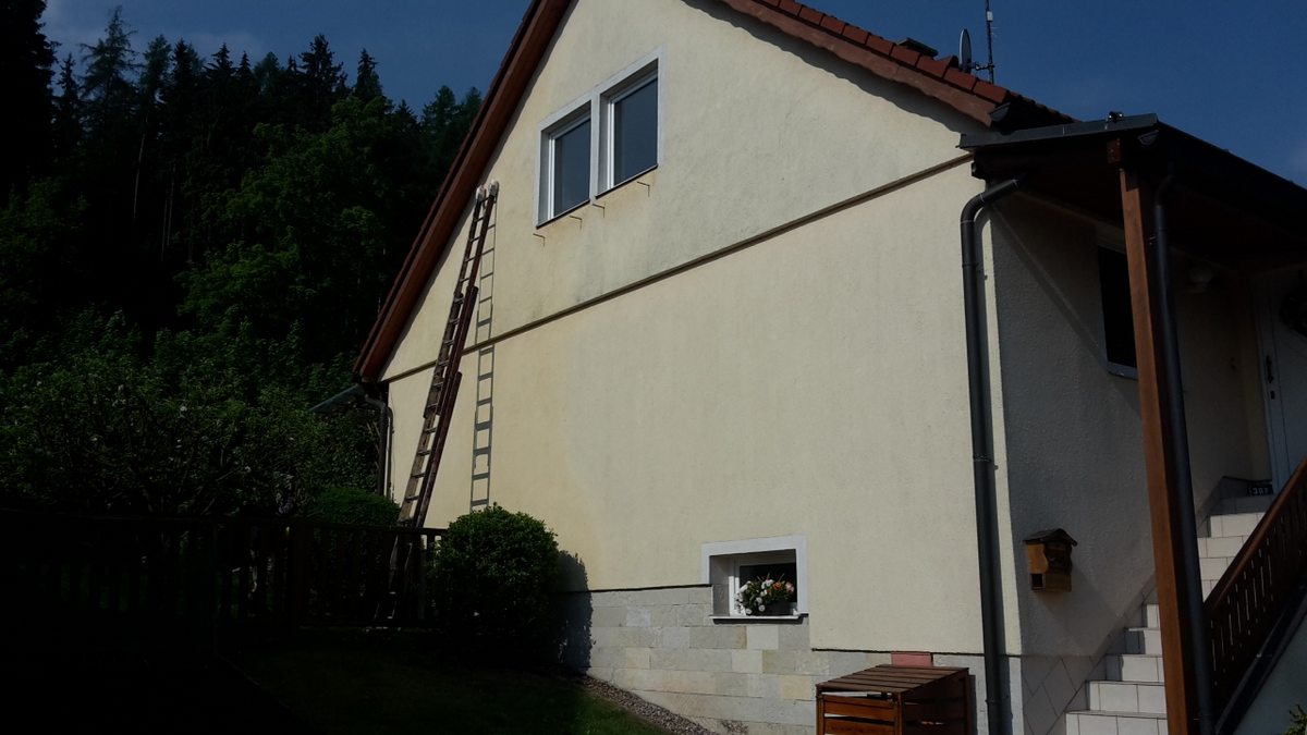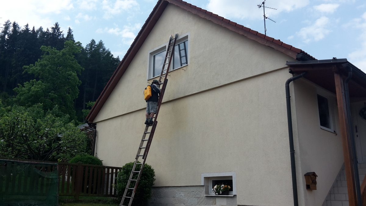 Mytí fasády, aplikace fungicidního prostředku na fasádu, nátěr fasády, očištění střechy