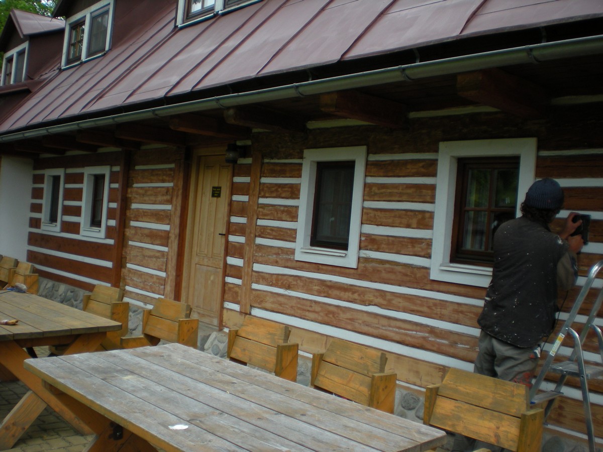 Nátěr dřevěného opláštění - odstín pinie