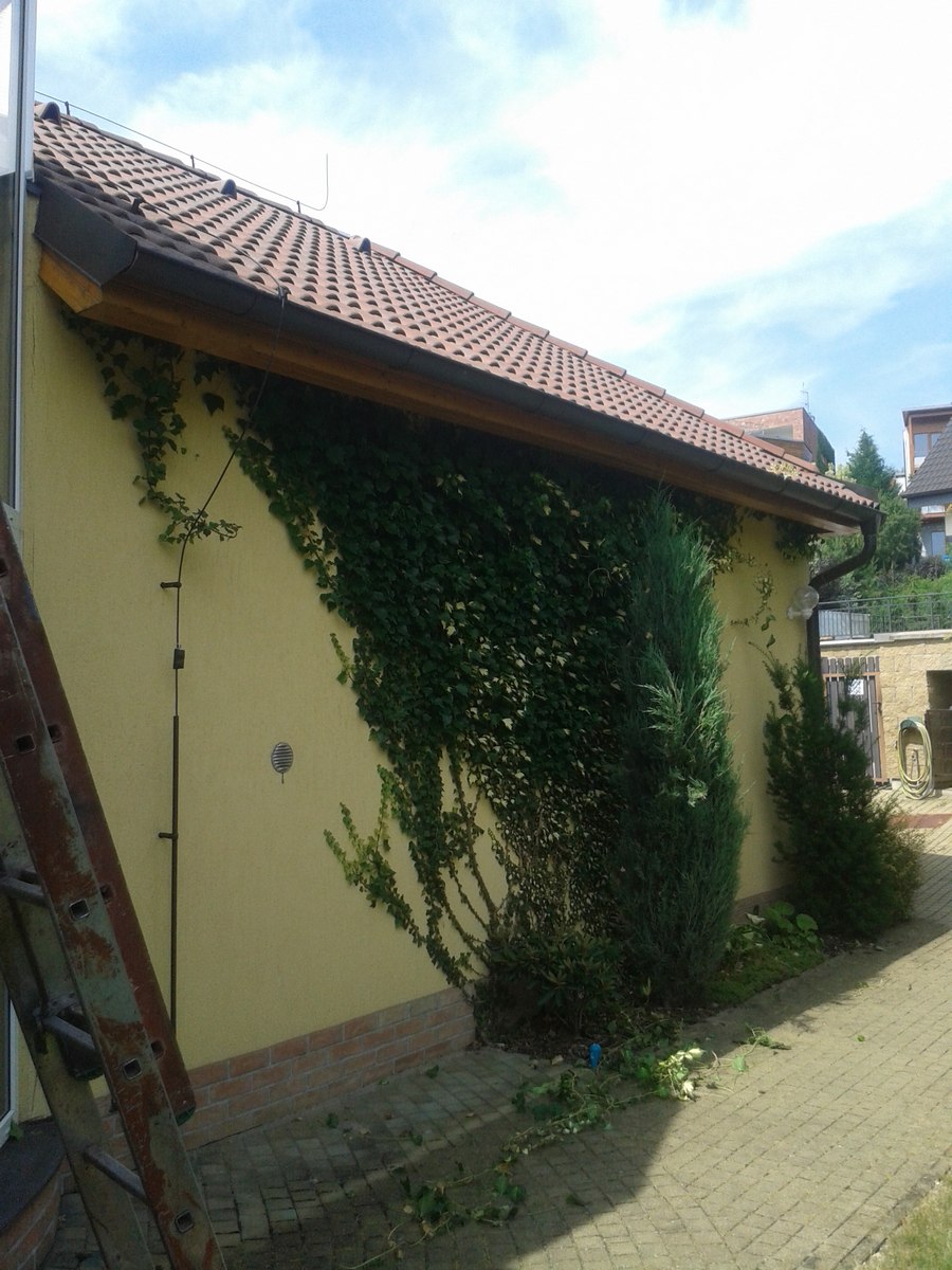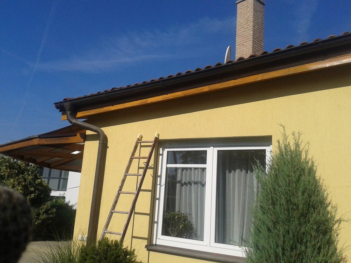 Nátěr dřevěných podhledů a štítů rodinného domu Praha Suchdol velikost 80m2