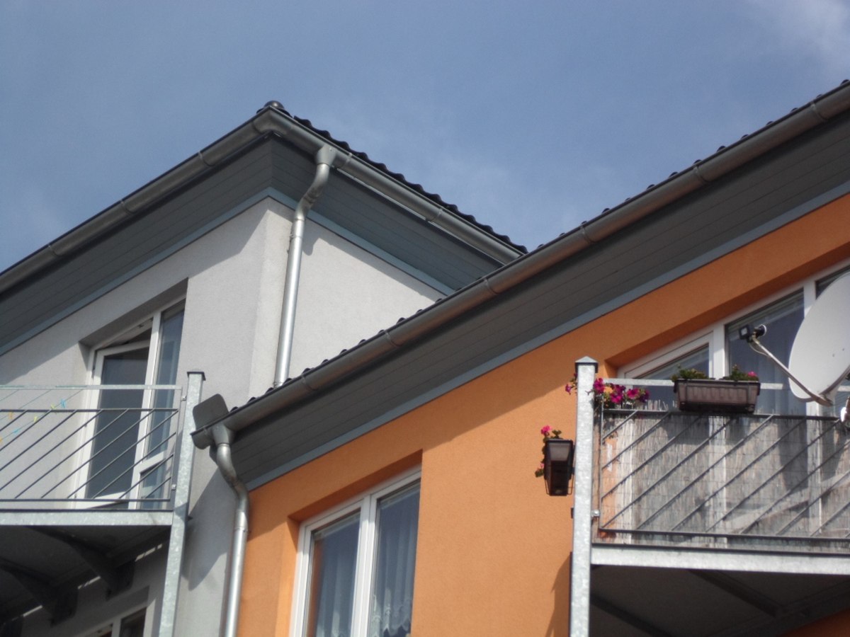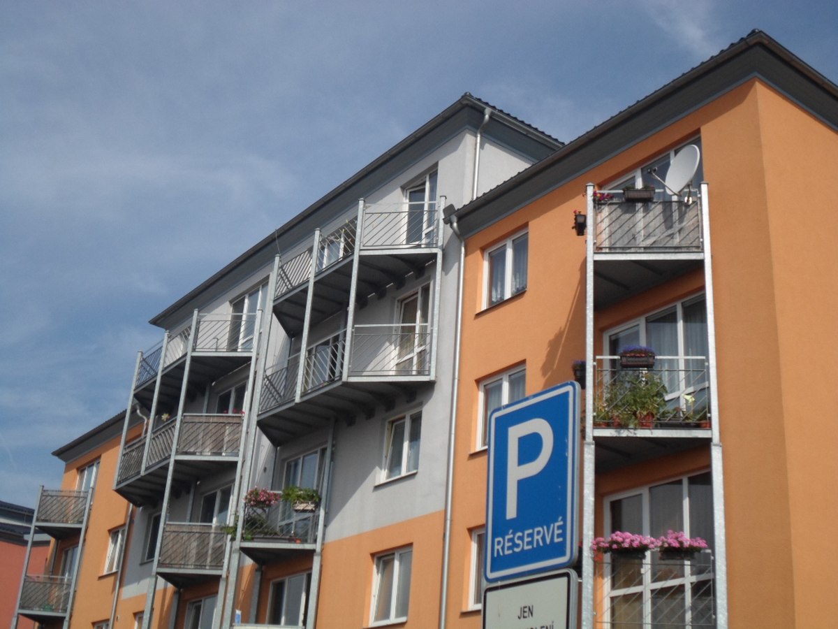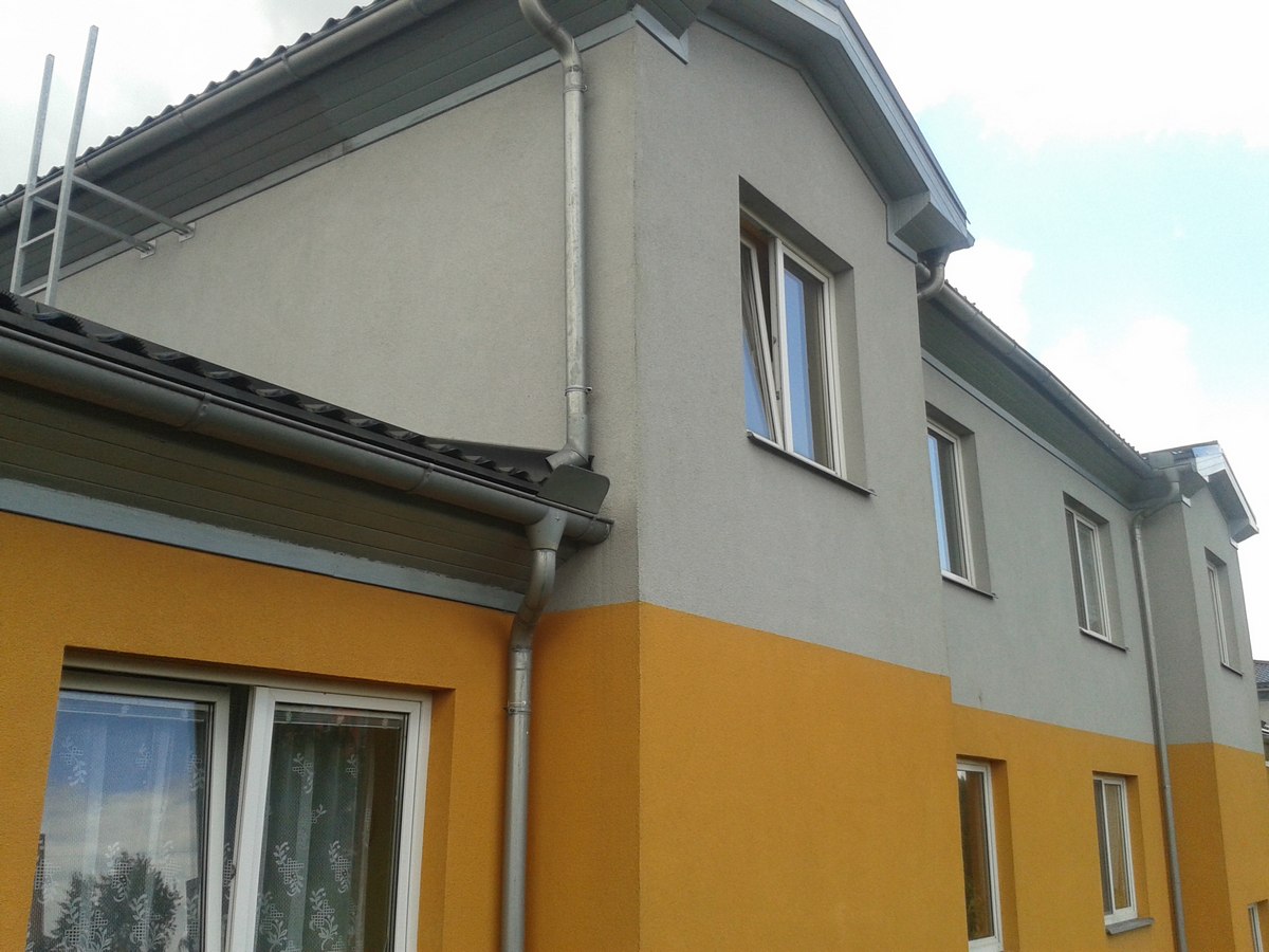 Nátěr dřevěných podhledů bytového domu Horní Počernice pomocí plošin man45, man