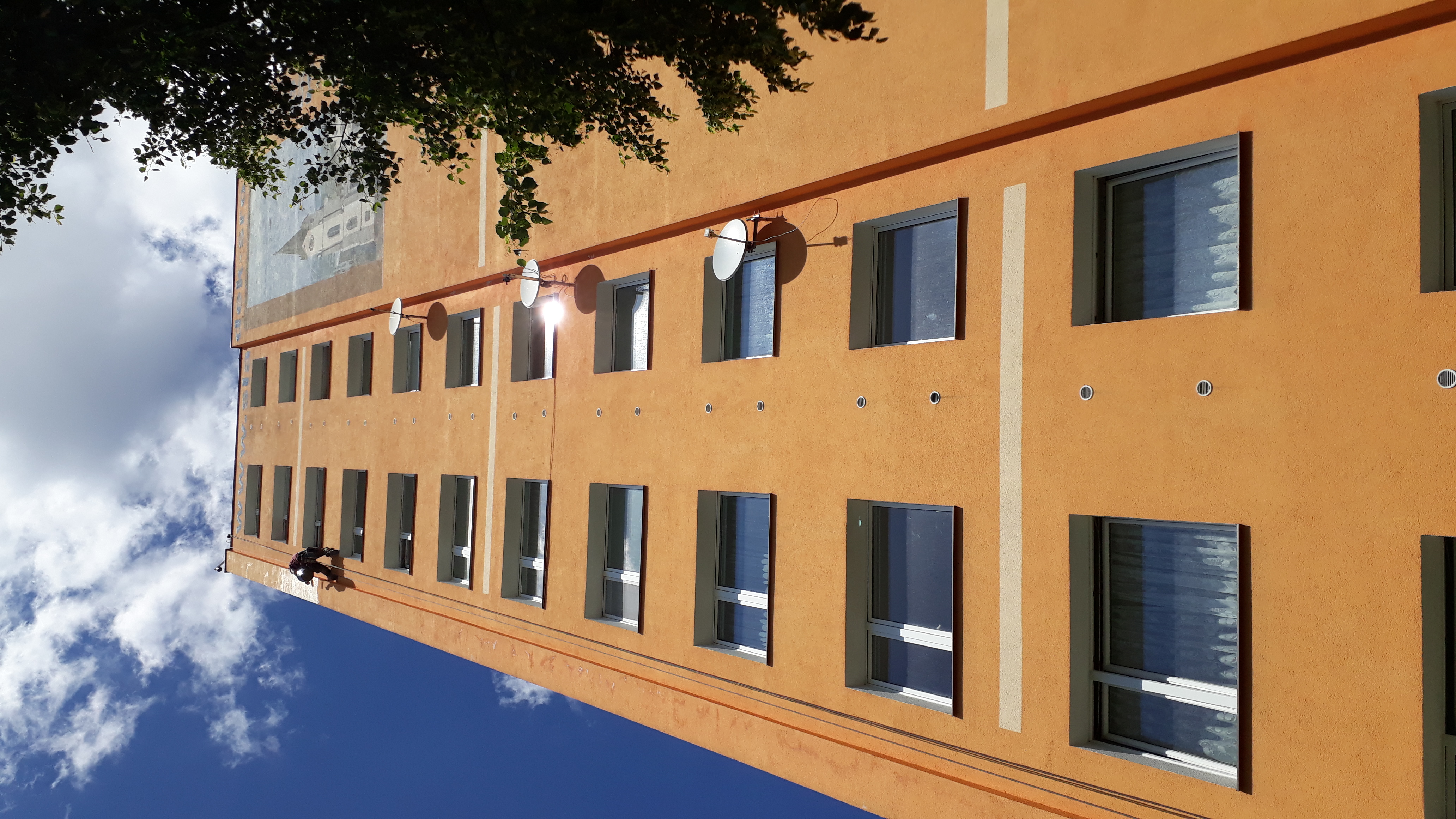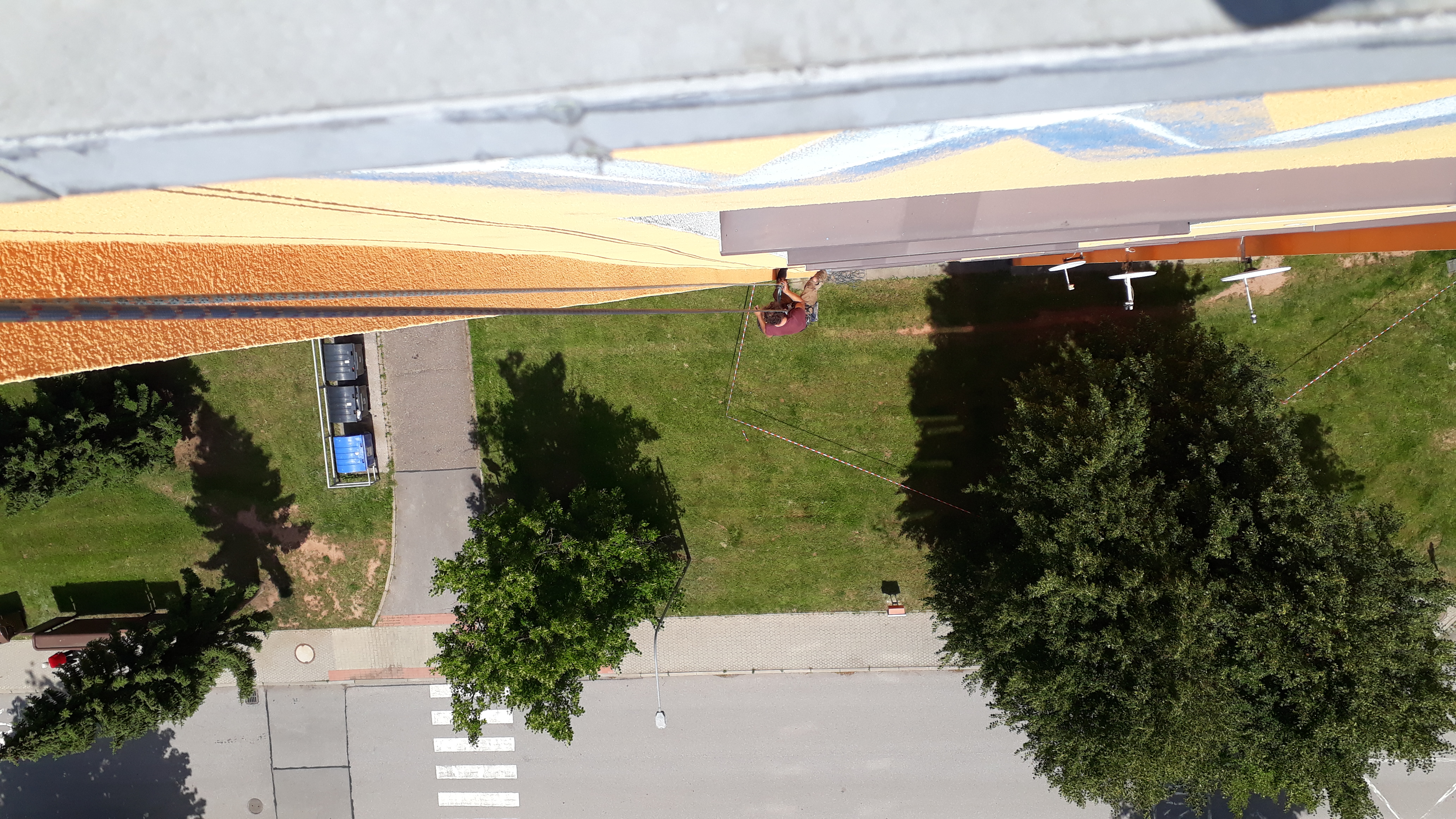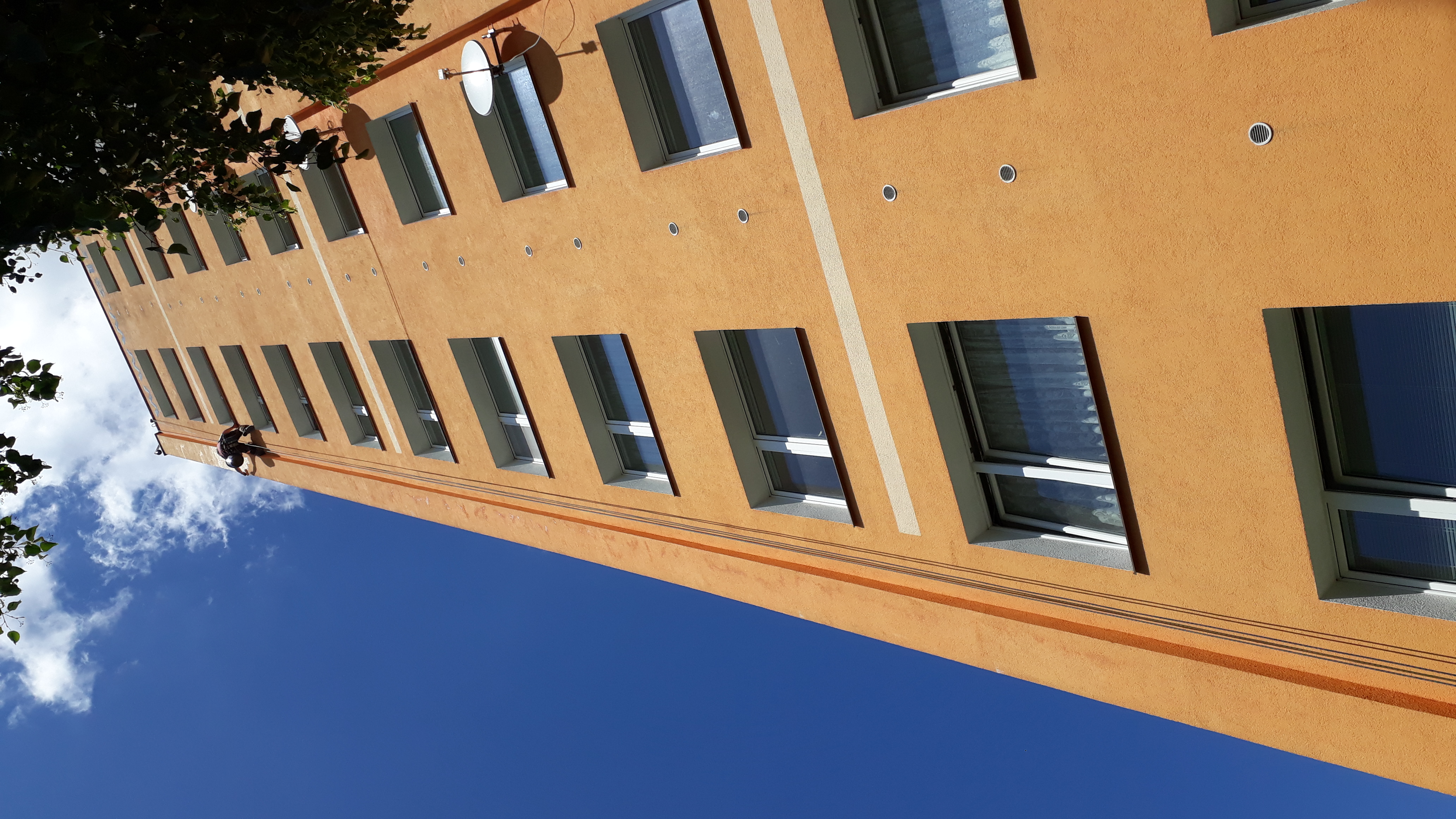 provedli jsme nátěr opravu a nátěr fasády opadaných částí fasády, nátěr barvou, nátěr parapetů.