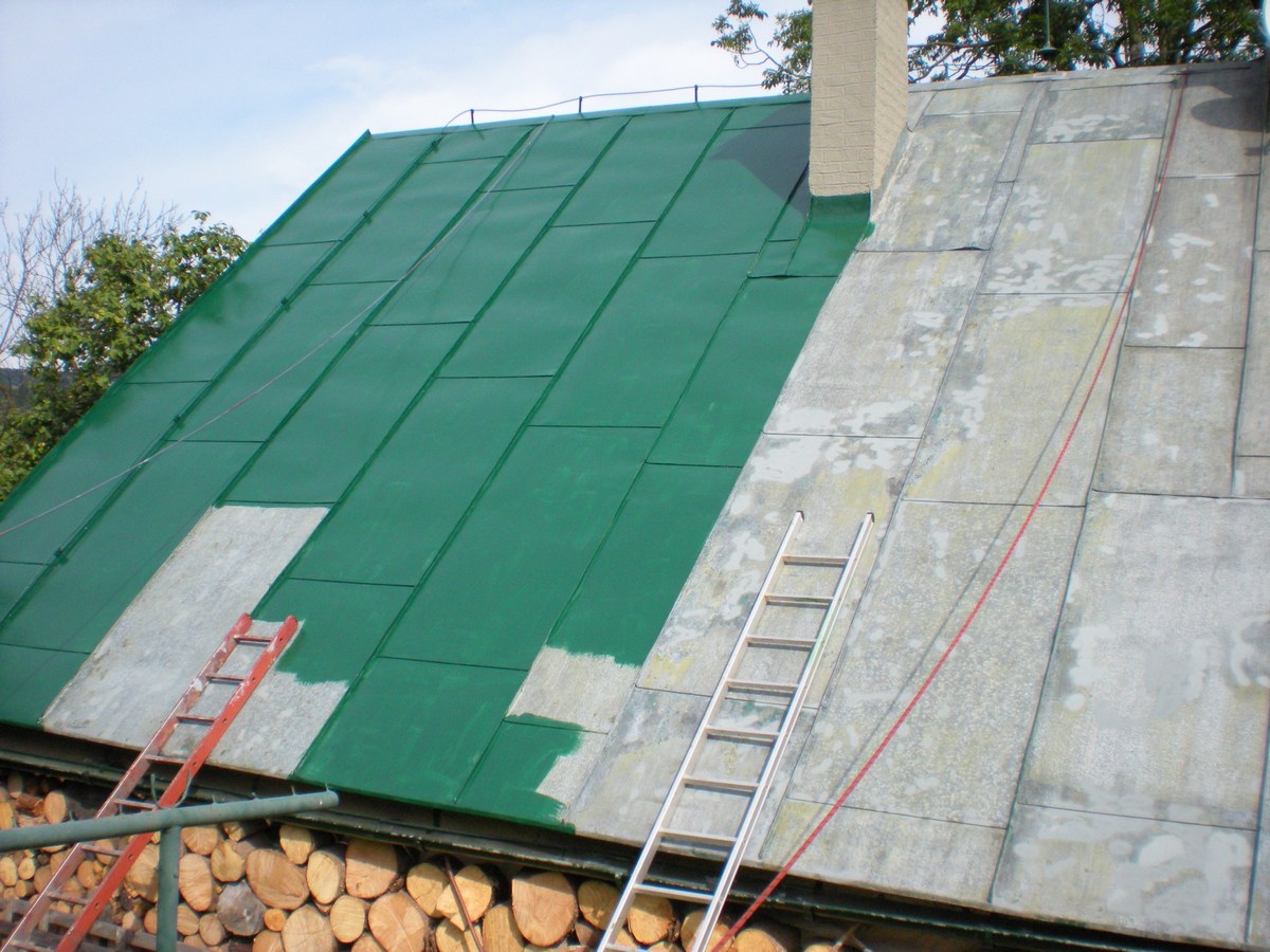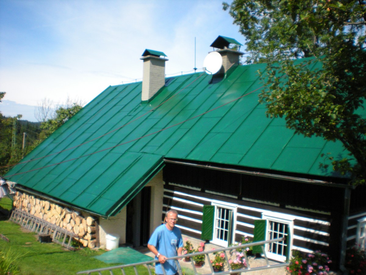 Nátěr střechy polyuretanovou barvou - Jizerské hory