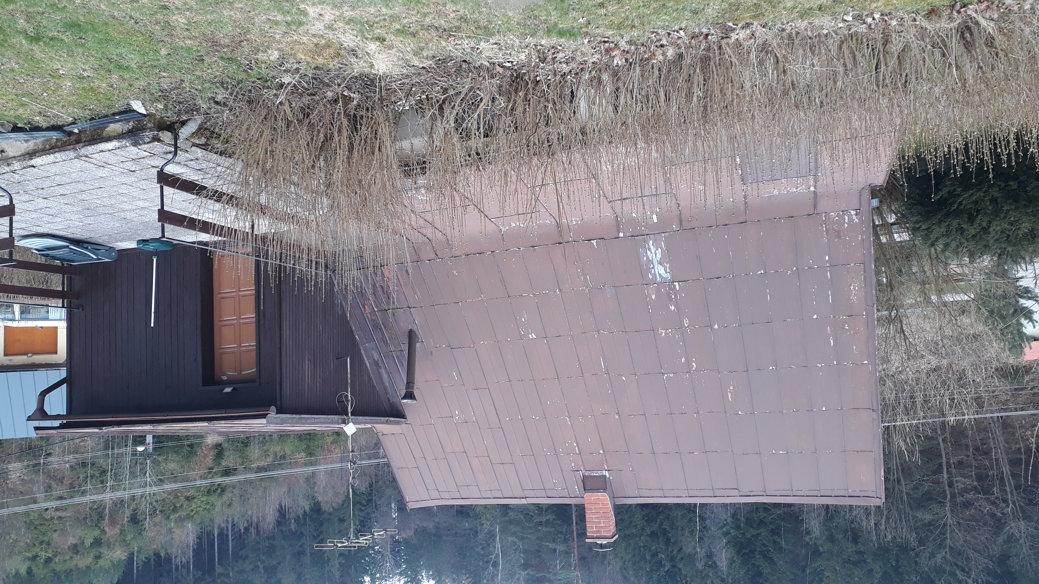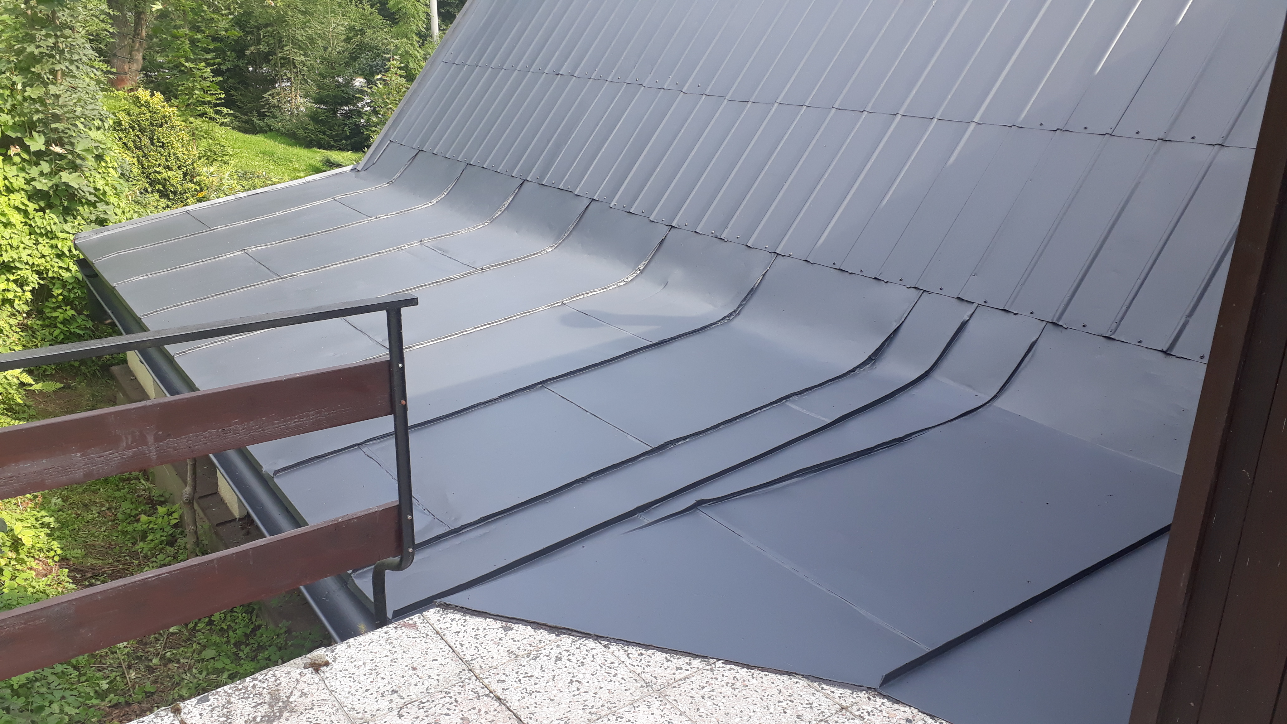 očištění a nátěr střechy, původní hnědá, nahrazena odstínem antracit, tmavě šedá