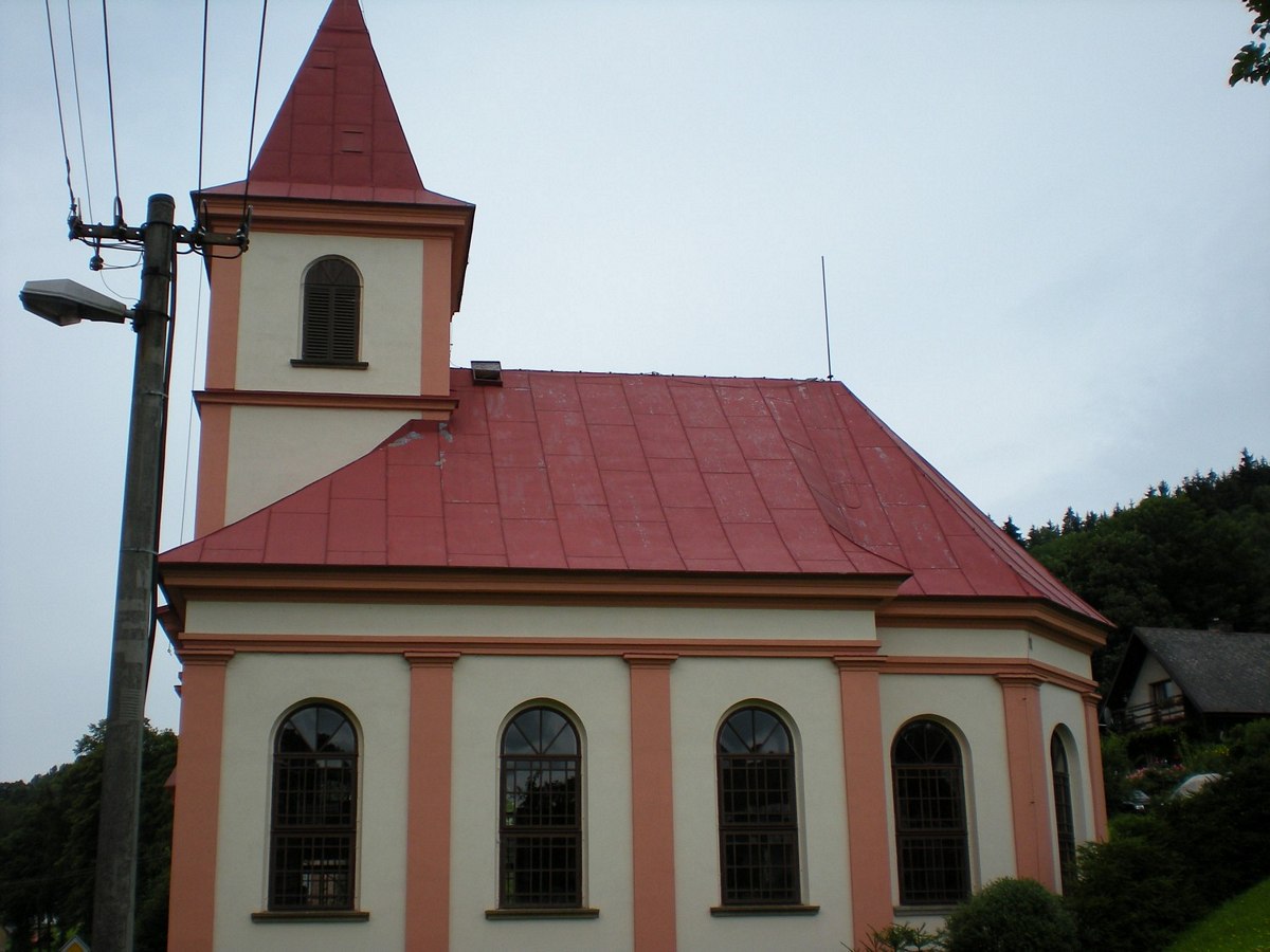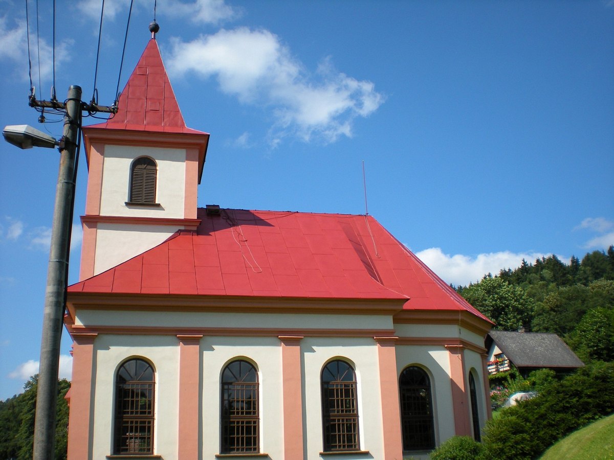 Nátěr střechy a věže kostela, velikost 300m2, okres Trutnov