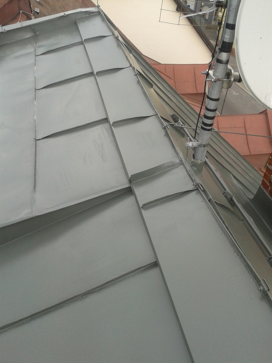 Nátěr střechy byl proveden syntetickým alkyd uretanovým nátěrem, odstín šedá, očištění a odmašení střechy přístrojem Wap