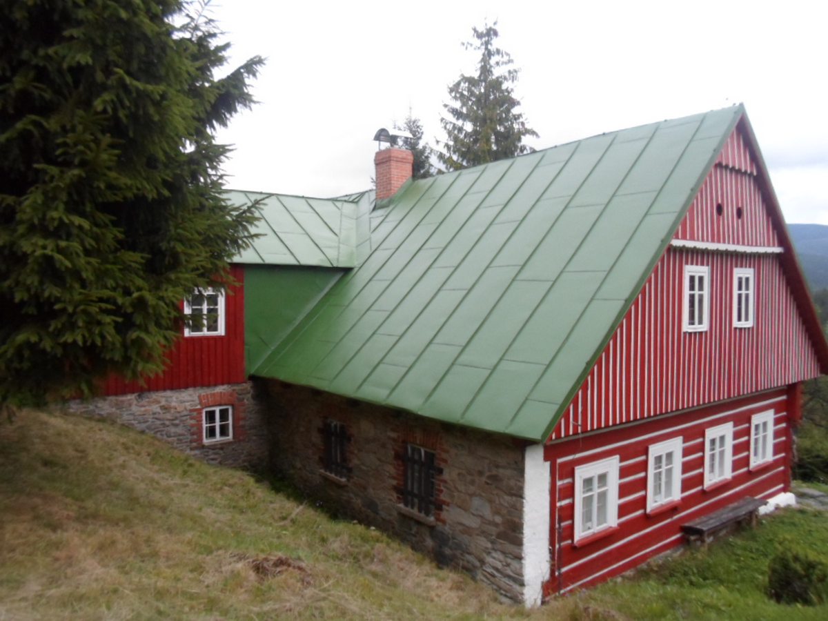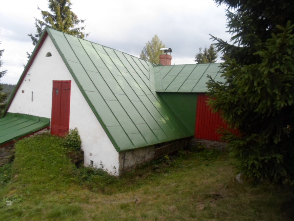 Nátěr střechy falcované v Krkonoších na soukromé chalupě, jednalo se o očištění vysokotlakým přístrojem, a po té dvojitý nátěr střechy