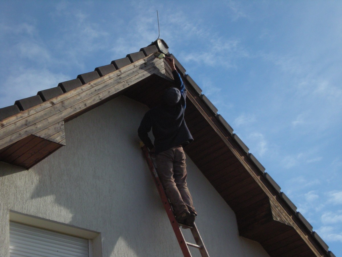 Obroušení dřeva na rodinném domě, napuštění dřeva penetrací a dvojitý nátěr lazurou