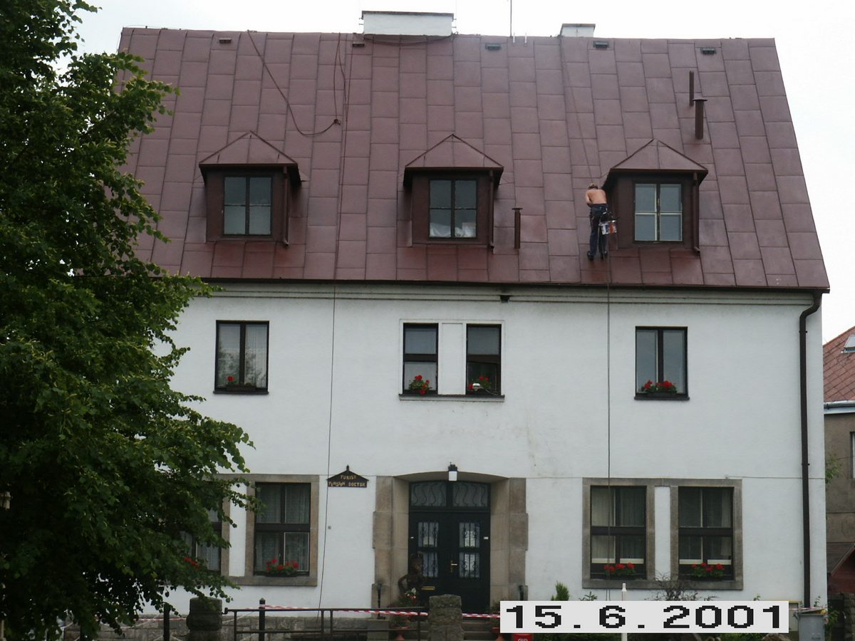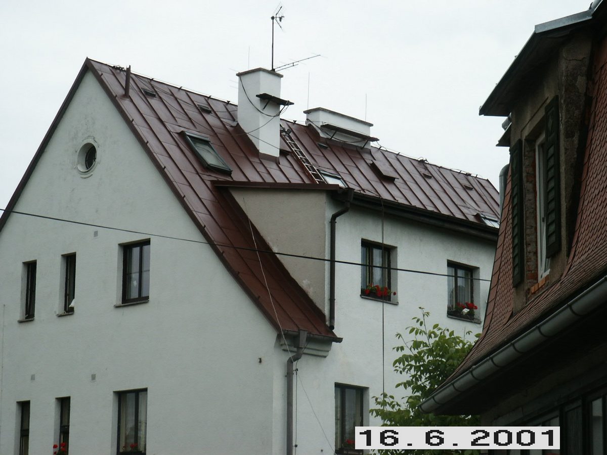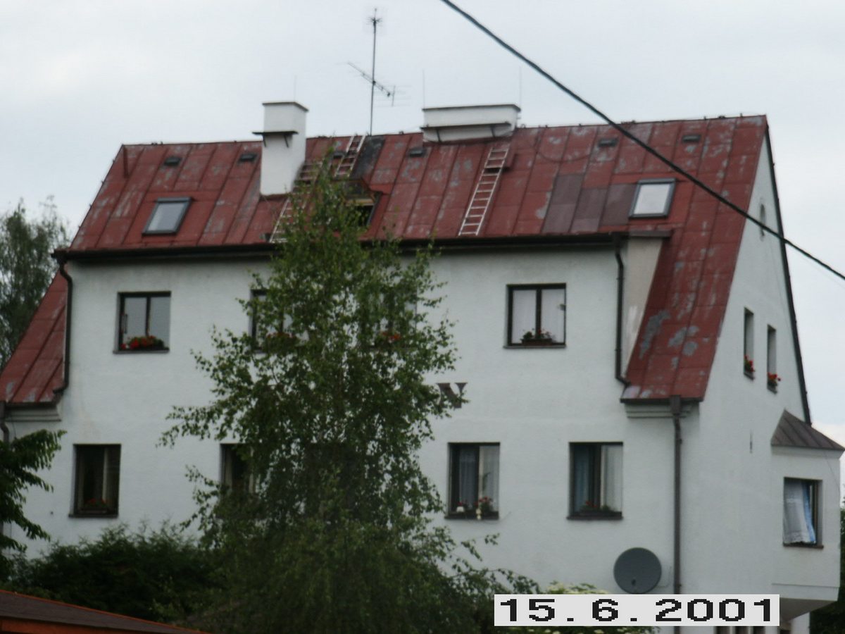 Očištění a nátěr střechy, oprava komínů