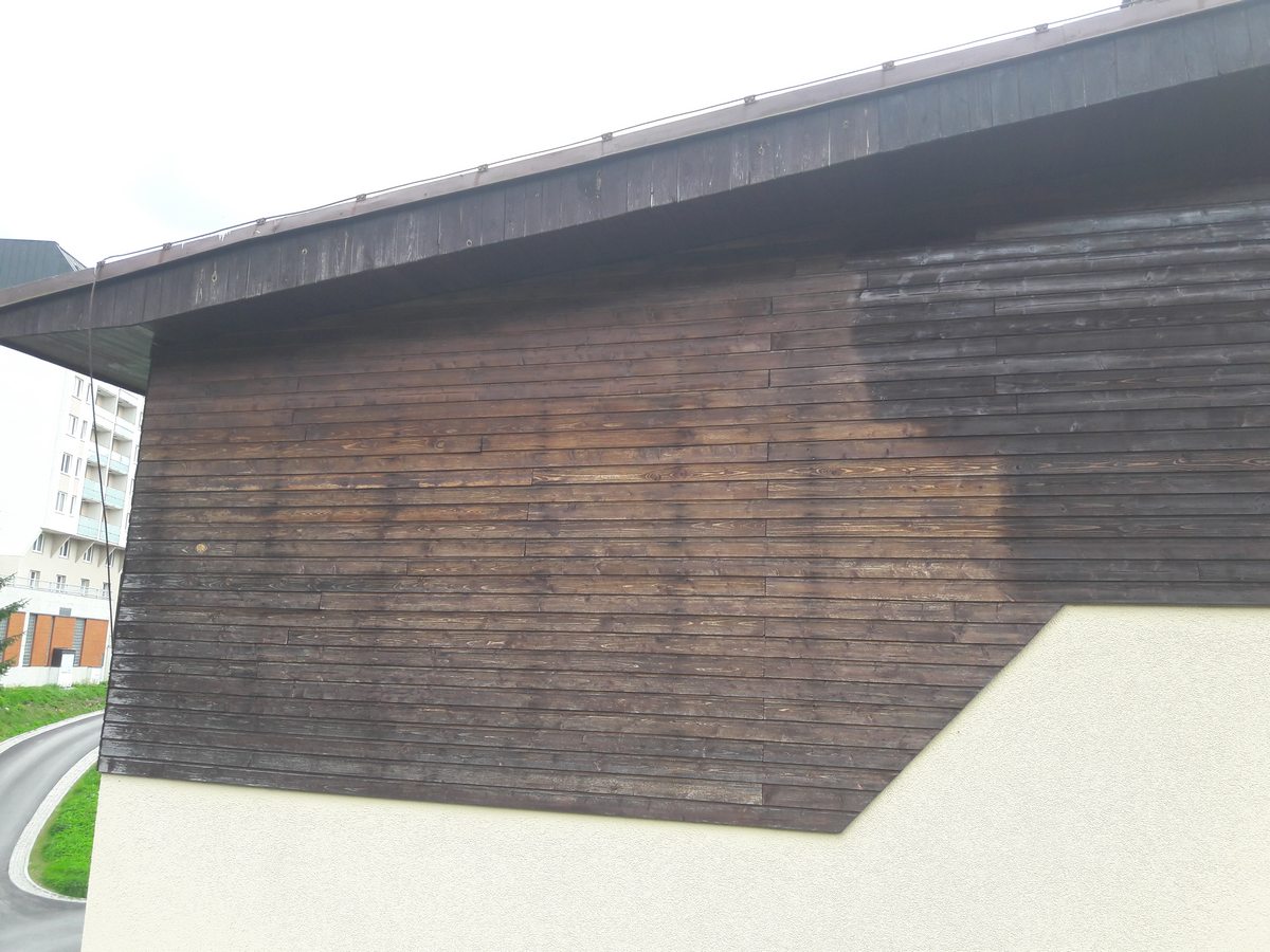 Nátěr fasády štítů panelového domu, nátěr dřeva