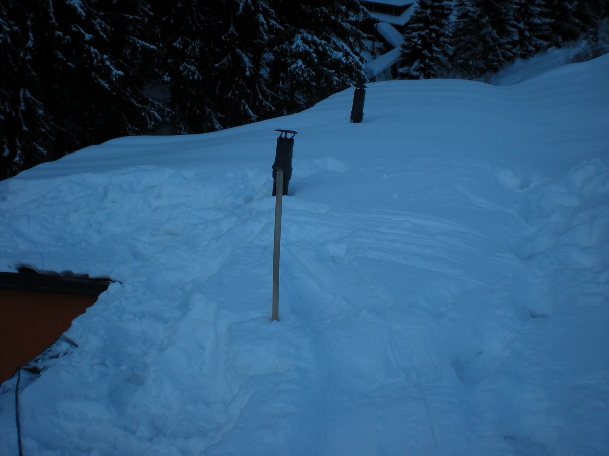 Odklizení sněhu ze střech, apartmány Pec pod Sněžkou