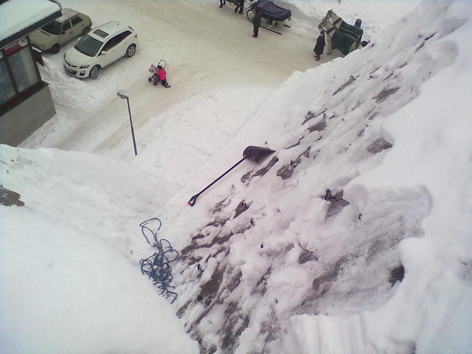 Odstranění sněhu ze střechy hotelu, Špindlerův mlýn