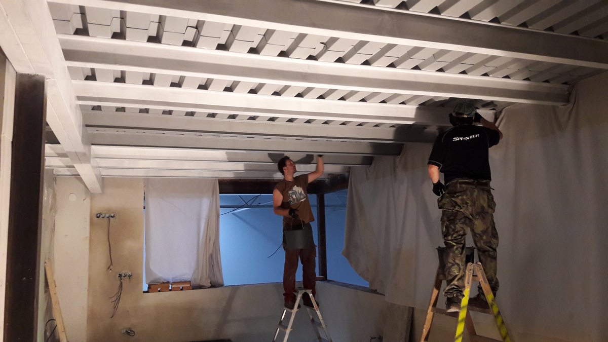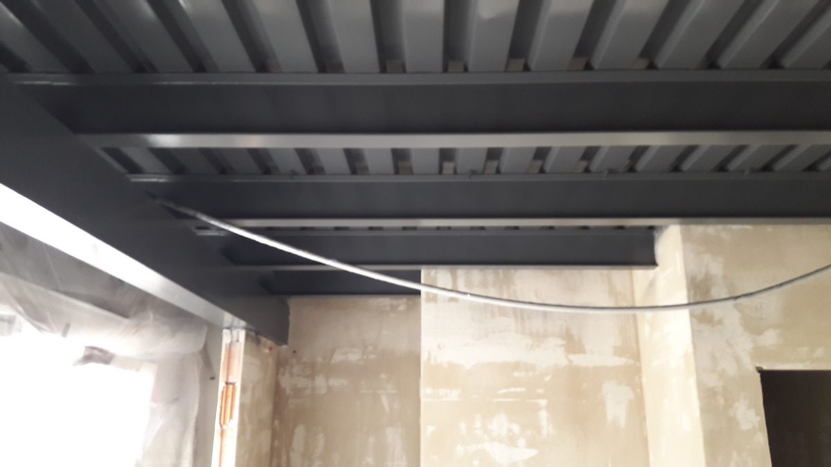 Dle zadání jsme provedli protipožární nátěr, odolnost 30min, dále byl proveden vrchní krycí nátěr odstín antracit