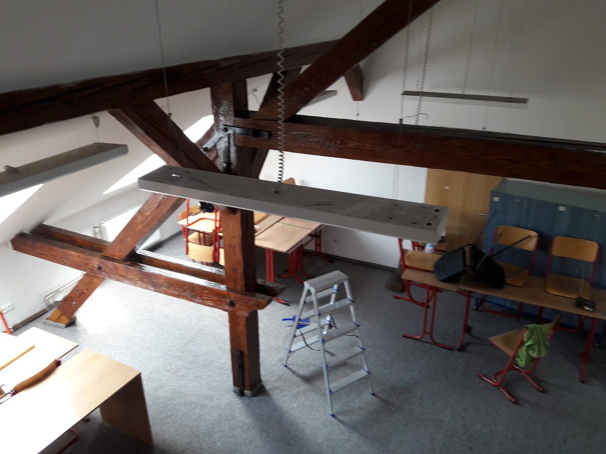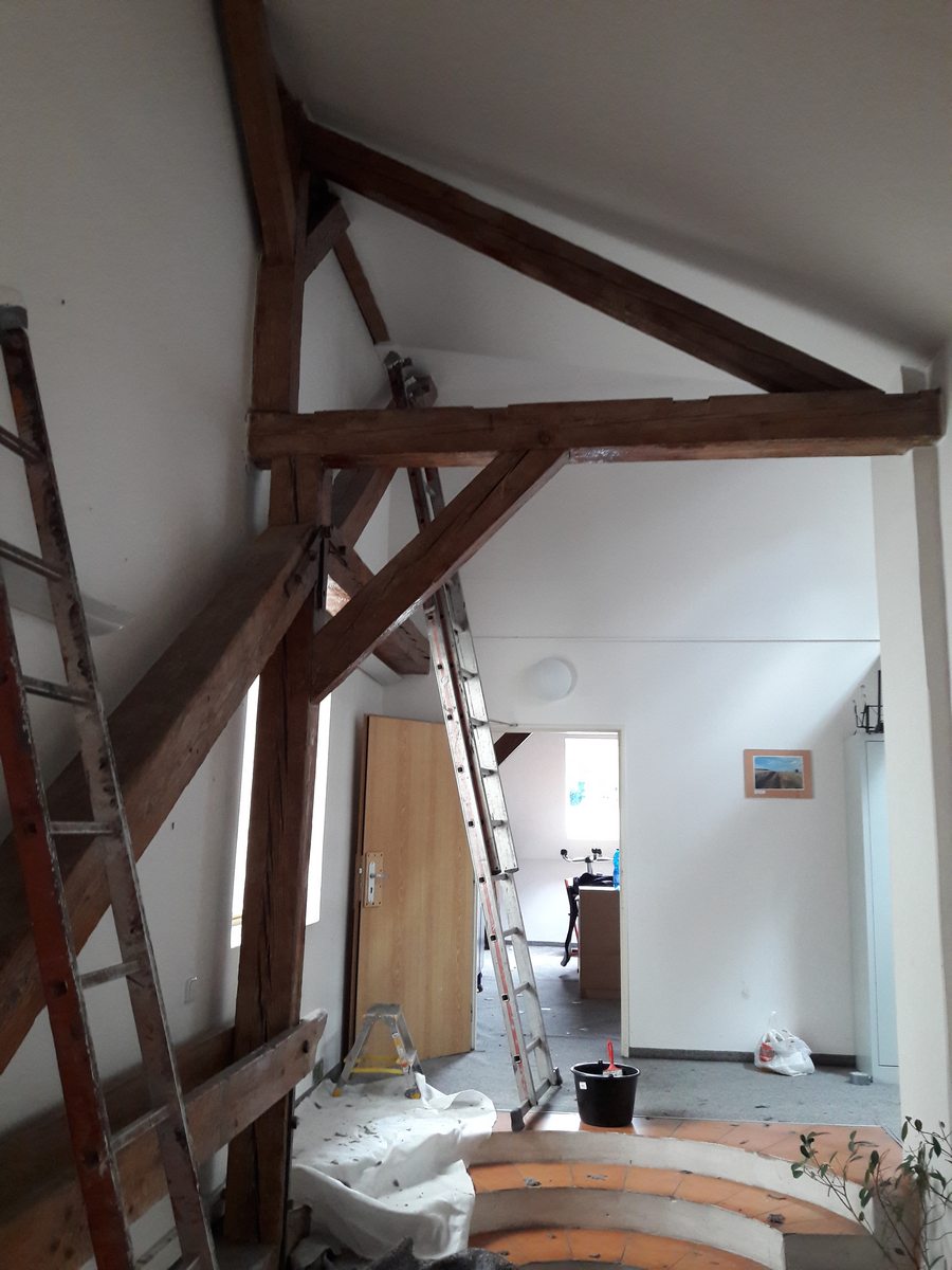 Dokončili jsme protipožární nátěr dřeva, dřevěných trámů v historické budově pošty v centru v Karlových Varech, o velikosti 300m2.