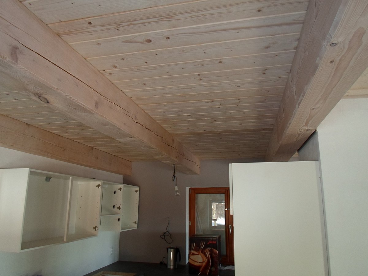 Protipožární nátěr dřevěných trámů, požární odolnost R30, vrchní transparentní nátěr