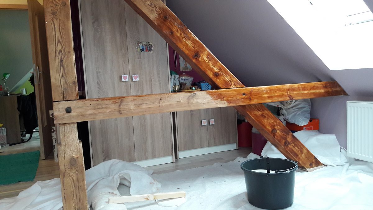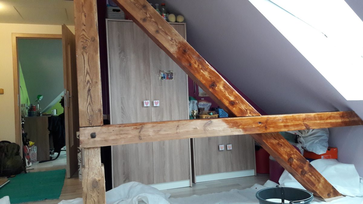 Provedli jsme protipožární nátěr na dřevo v půdní vestavbě, kde zůstali přiznané nosné trámy.Místo Mladá Boleslav. Zároven jsme dodali dokumentaci ke kolaudačnímu řízení.