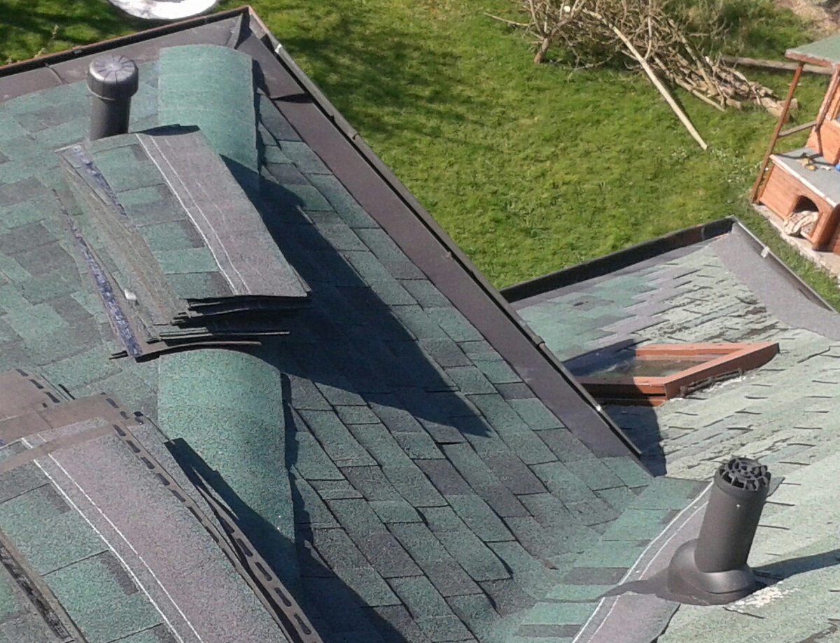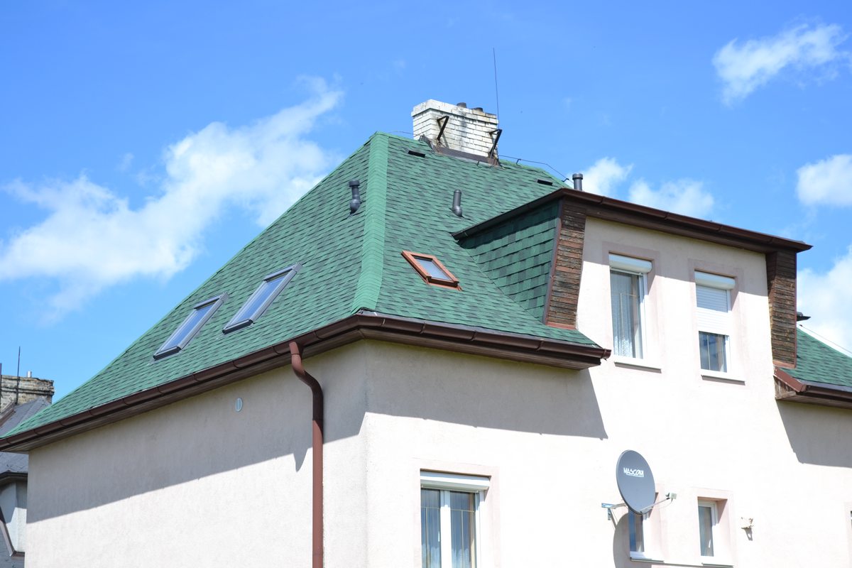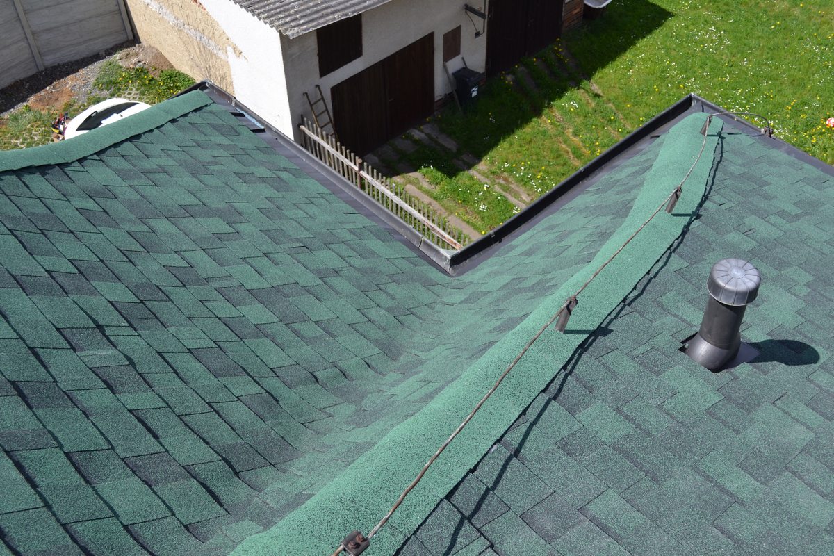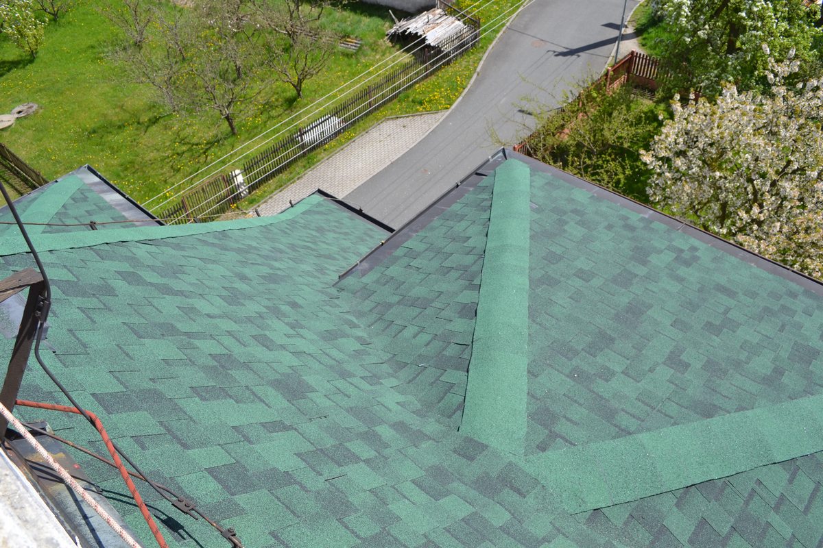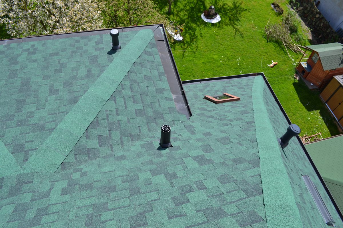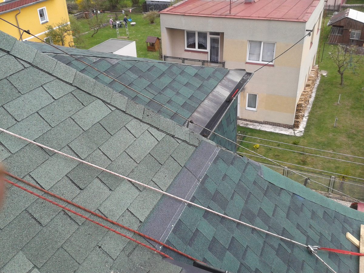 Provedli jsme rekonstrukci střechy dvouvrstvým šindelem Iko cambridge Express, stávající degradovaný šindel jsme nahradily novým, bez nutnosti demontáže, původní šindel tak tvoří pojistnou hydroizolaci, odstín zelený green 48