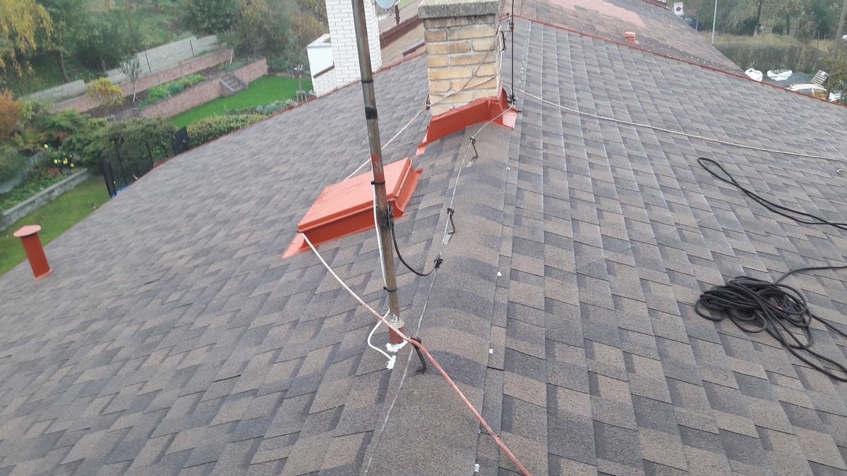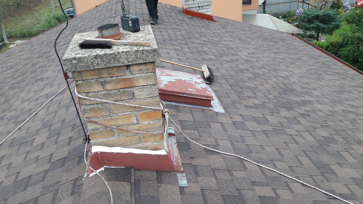 Provedli jsme rekonstrukci střechy, nátěr klempířských prvků a kompletní výměna starých žlabů a svodů, Stávající dosluhující krytina byla nahrazena kvalitní dvouvrstvou šindelí Iko cambridge extreme, klemp. prvky byli zachovány, pouze ošetřeny novým nátěrem, žlaby a svody vyměněny za bezůdržbové.