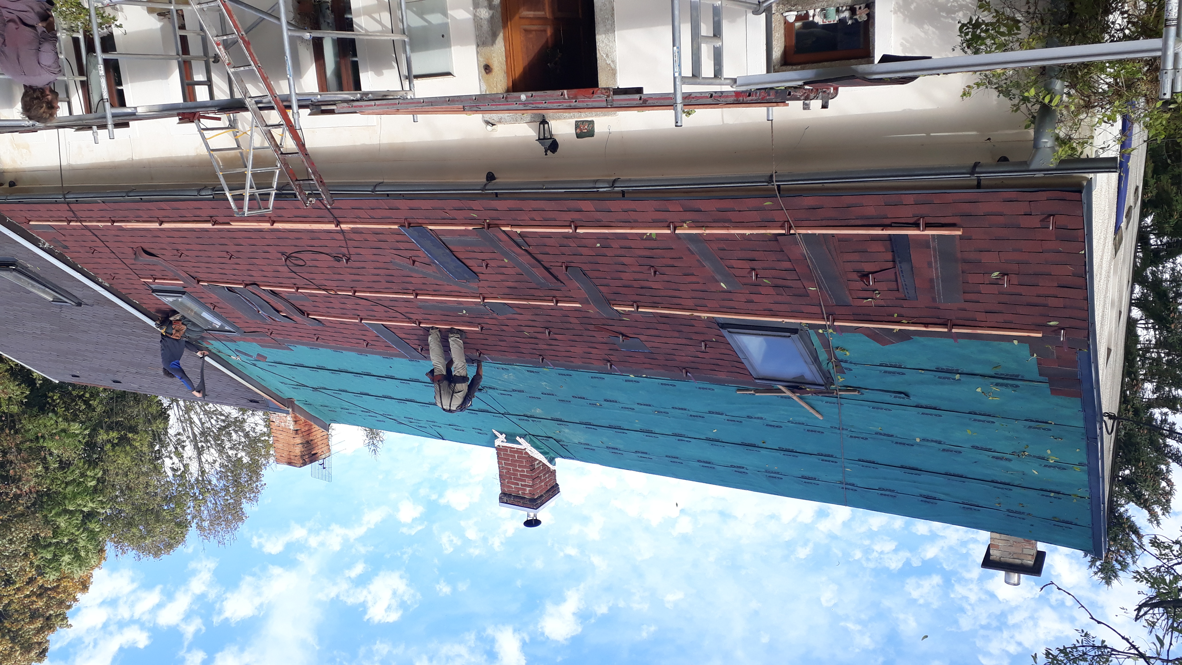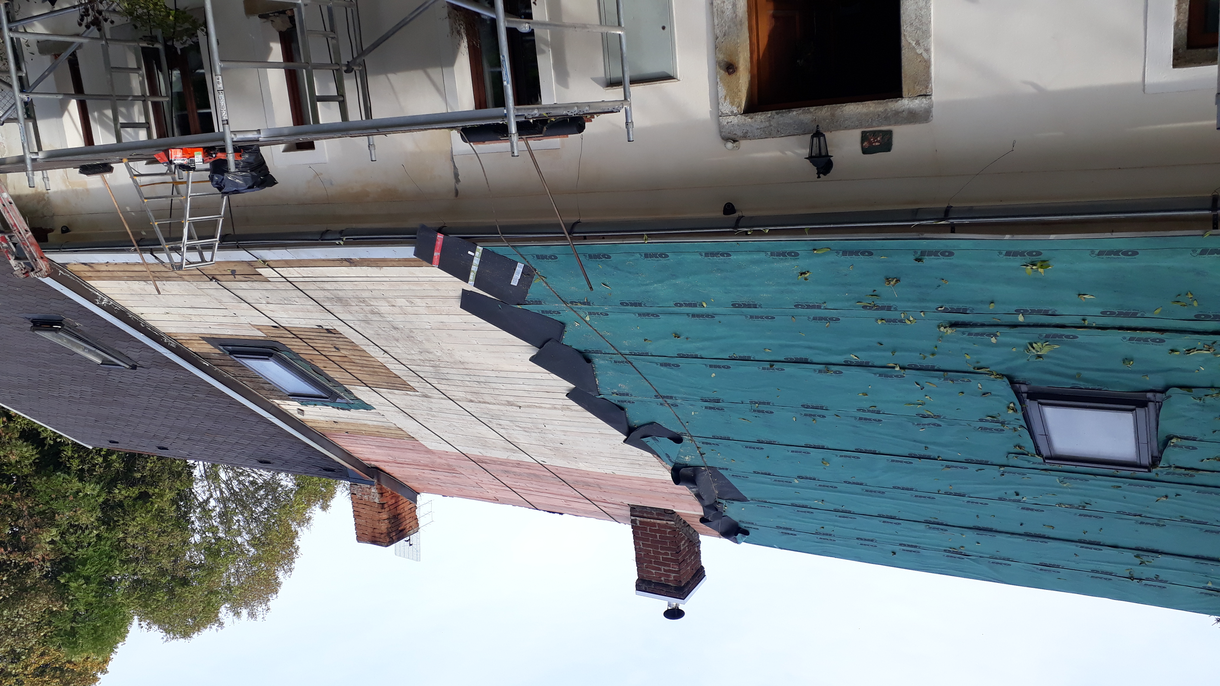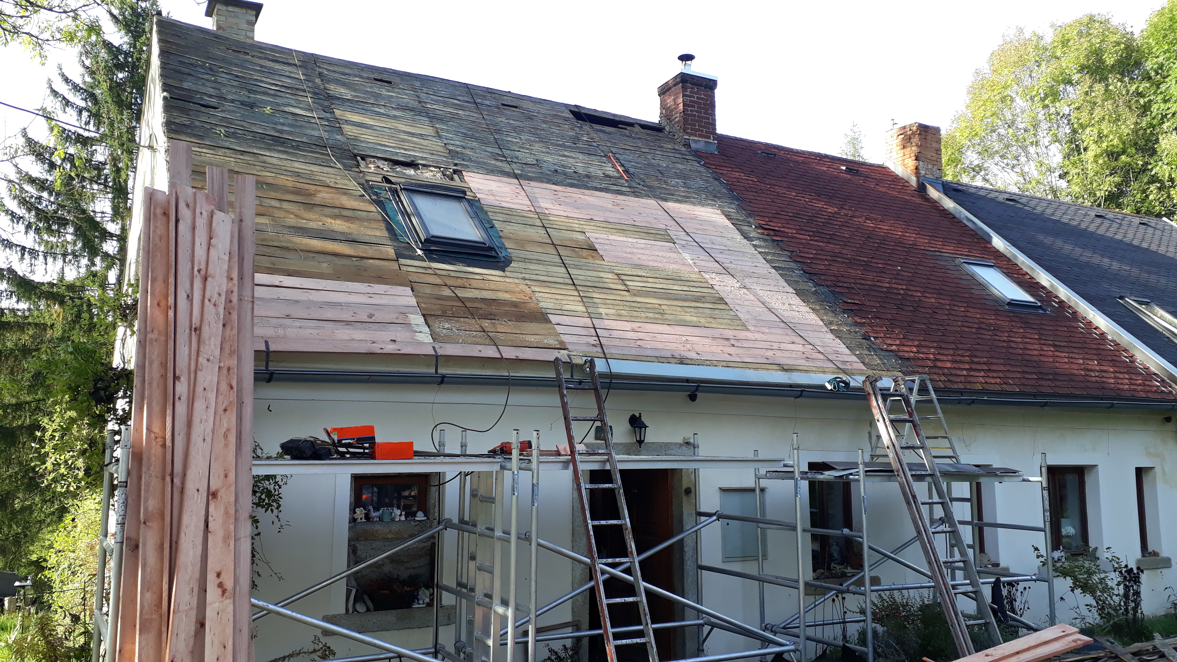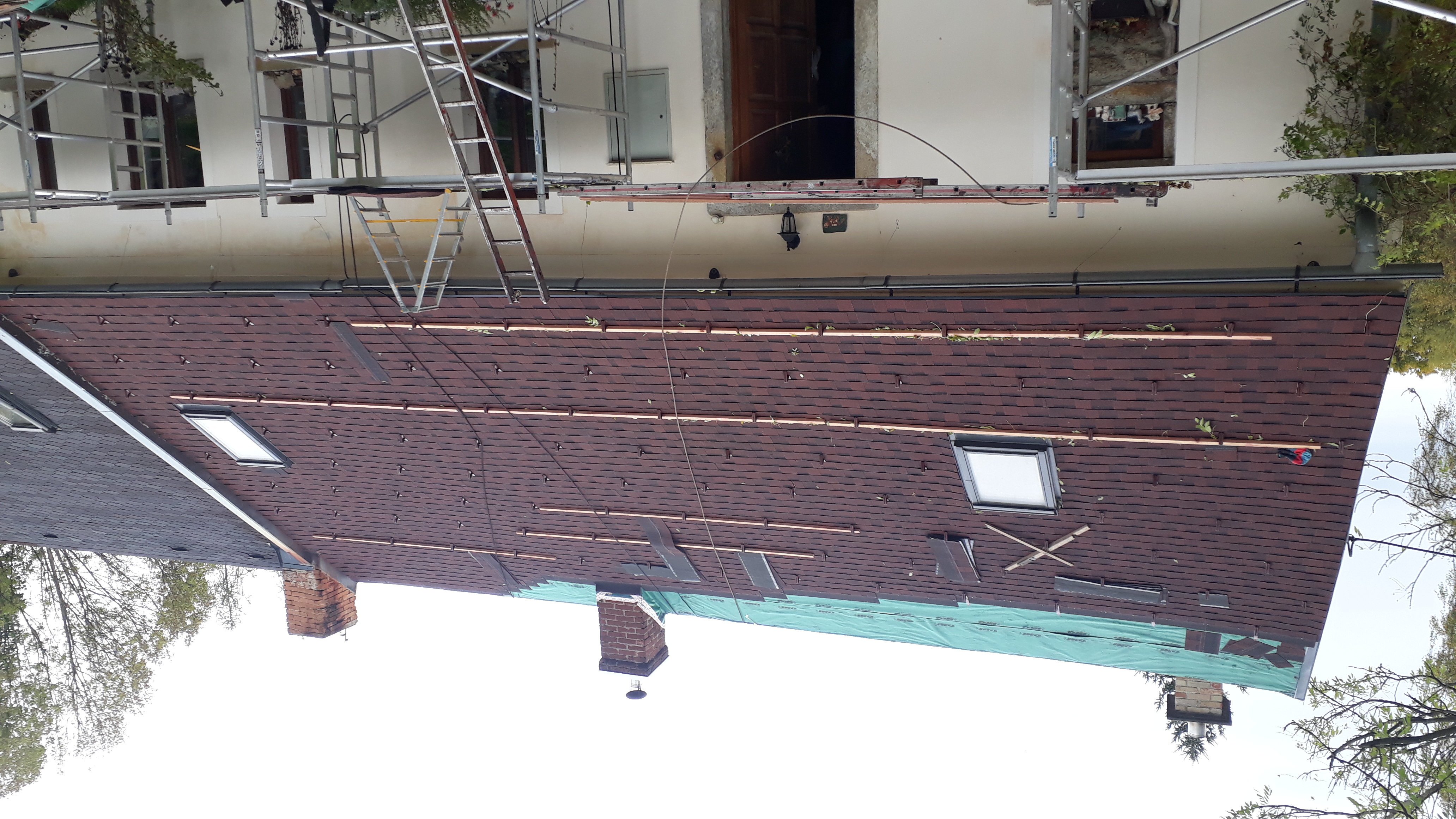 provedli jsme kompletní výměnu staré střešní krytiny, demontáž staré krytiny, výměna starého bednění, nové střešní folie, montáž nové střešní krytiny včetně protisněhových zábran.