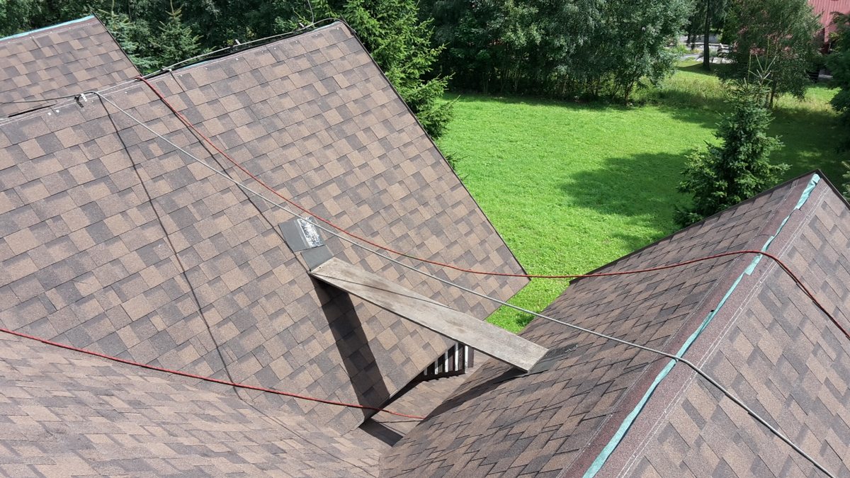 Rekonstrukce střechy, stržení staré dožité šindele, montáž nové dvouvrstvé šindele Iko cambridge extreme. Dále byl proveden nový odvětraný hřeben.