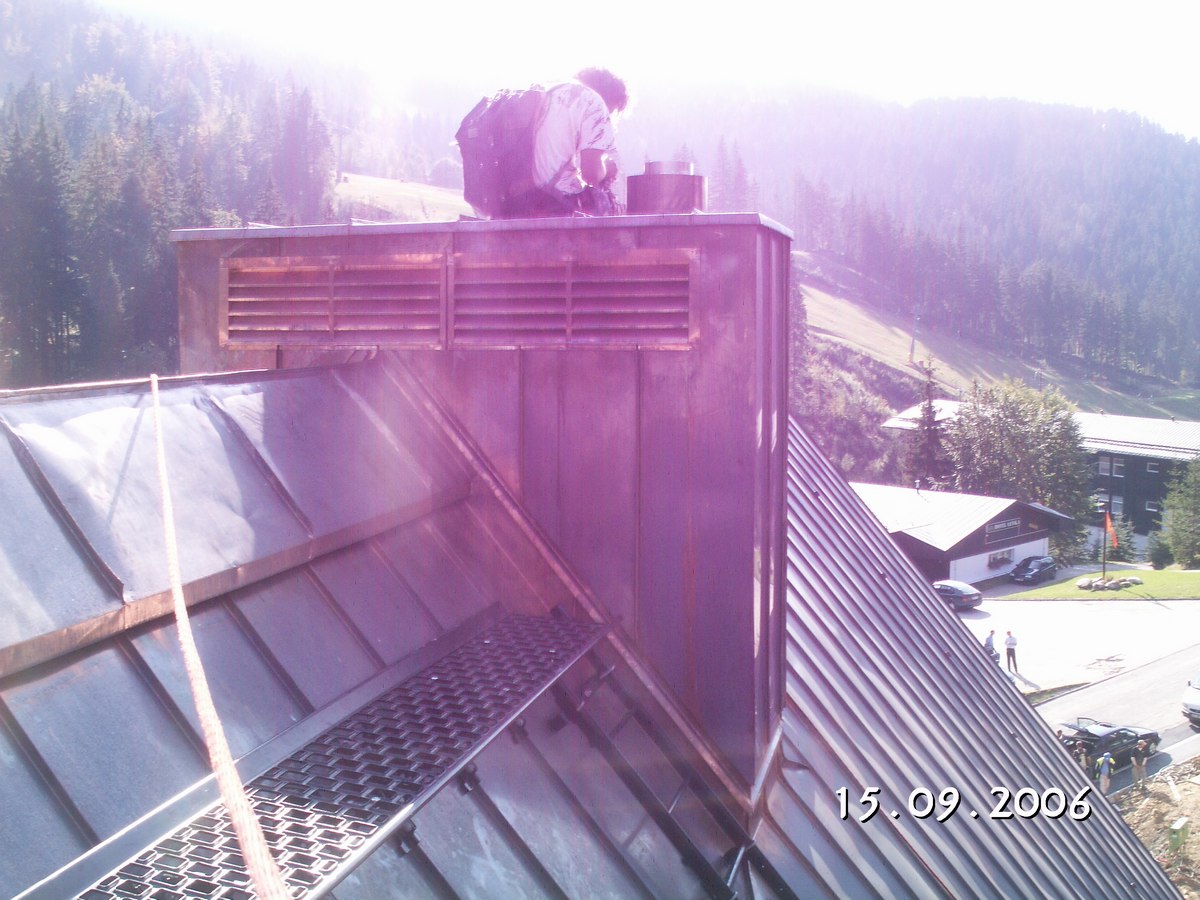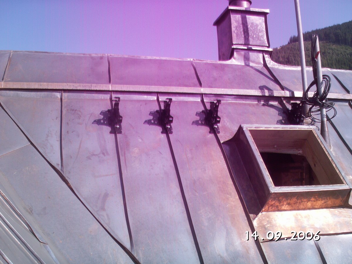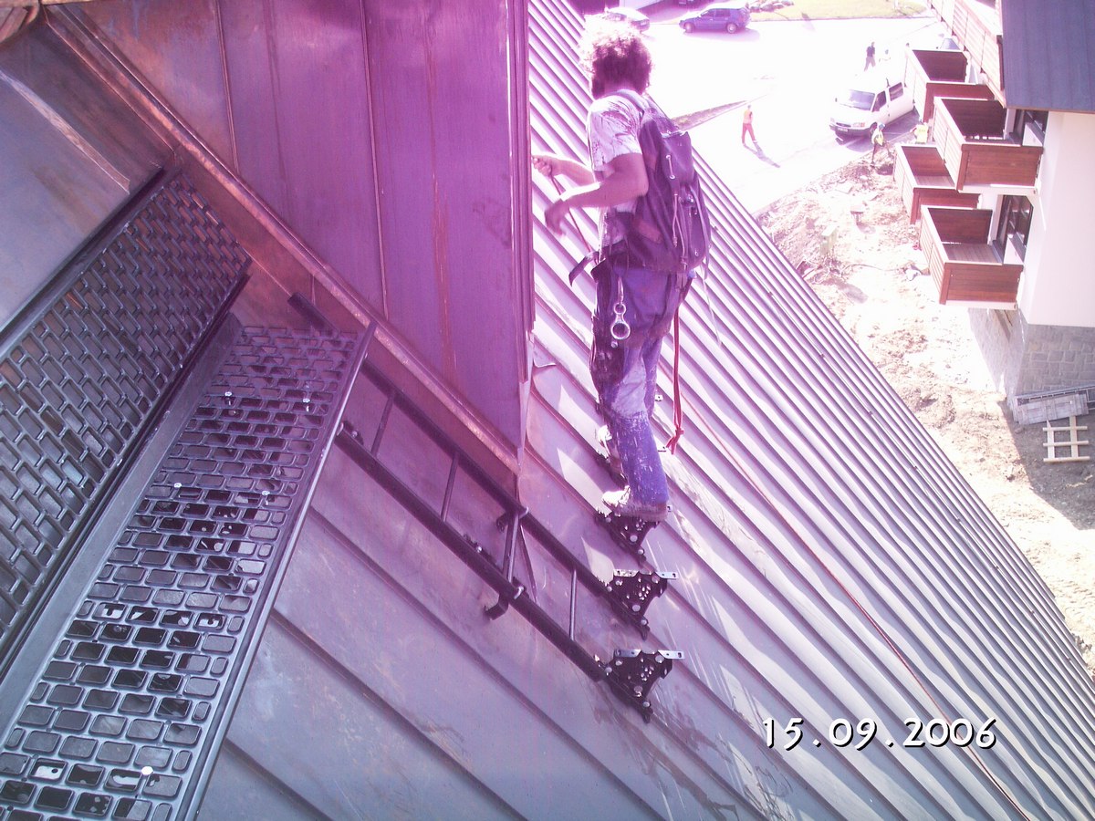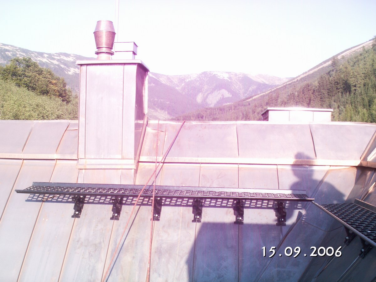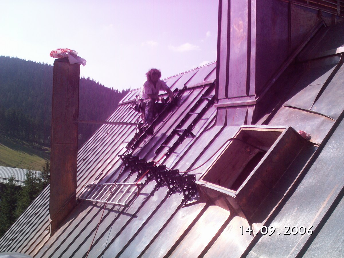 Rekonstrukce střechy, montáž střešních lávek systém Lindab