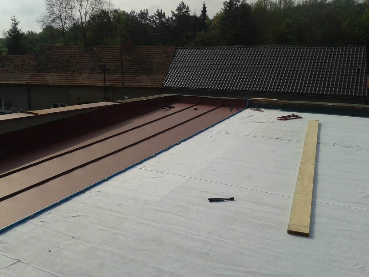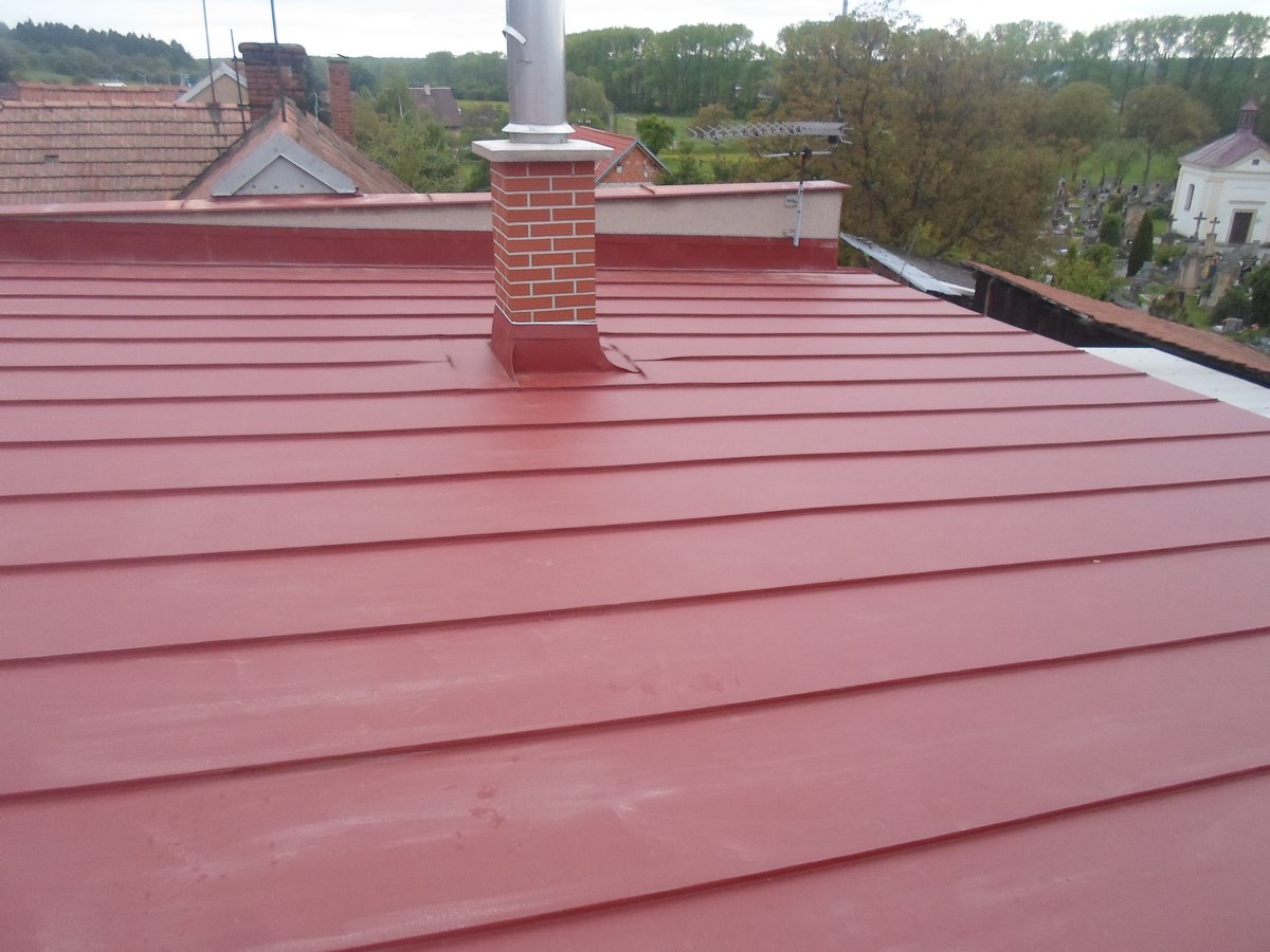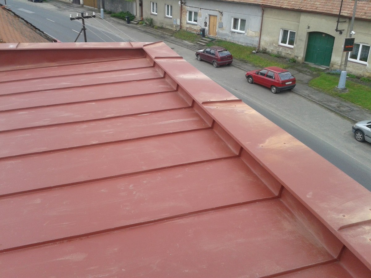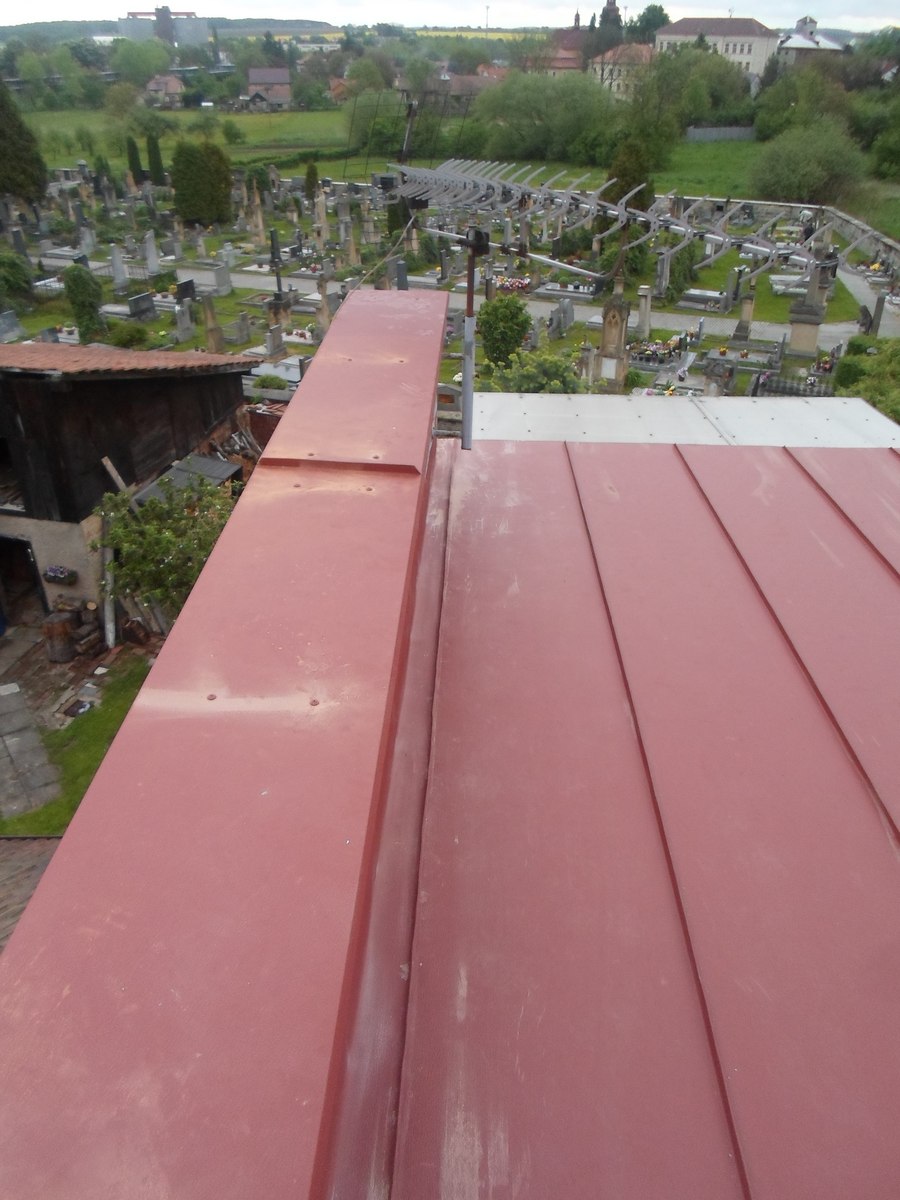 Rekonstrukce střechy Prefalz, rakouský hliník s životností 100let, demontáž, odvoz, likvidace staré krytiny, montáž plechů, včetně nových atik, nových žlabů a svodů