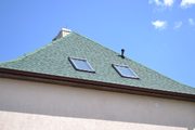 Provedli jsme rekonstrukci střechy dvouvrstvým šindelem Iko cambridge Express, stávající degradovaný šindel jsme nahradily novým, bez nutnosti demontáže, původní šindel tak tvoří pojistnou hydroizolaci, odstín zelený green 48