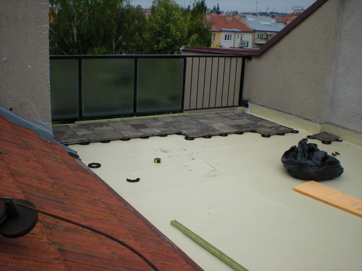 Rekonstrukce terasy PVC folií, včetně izolace + pokládka dlažby