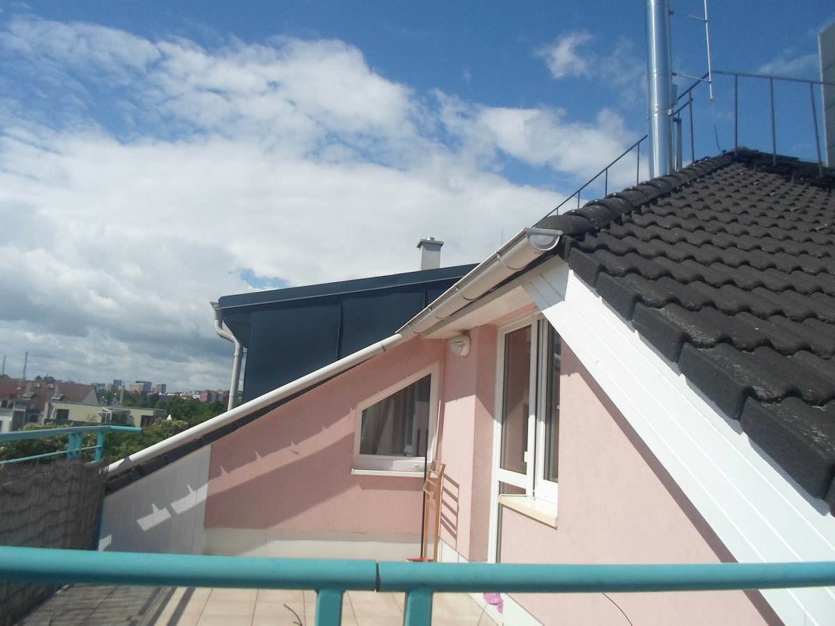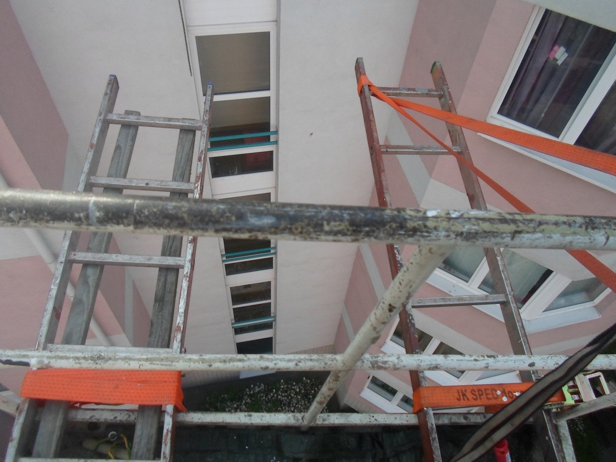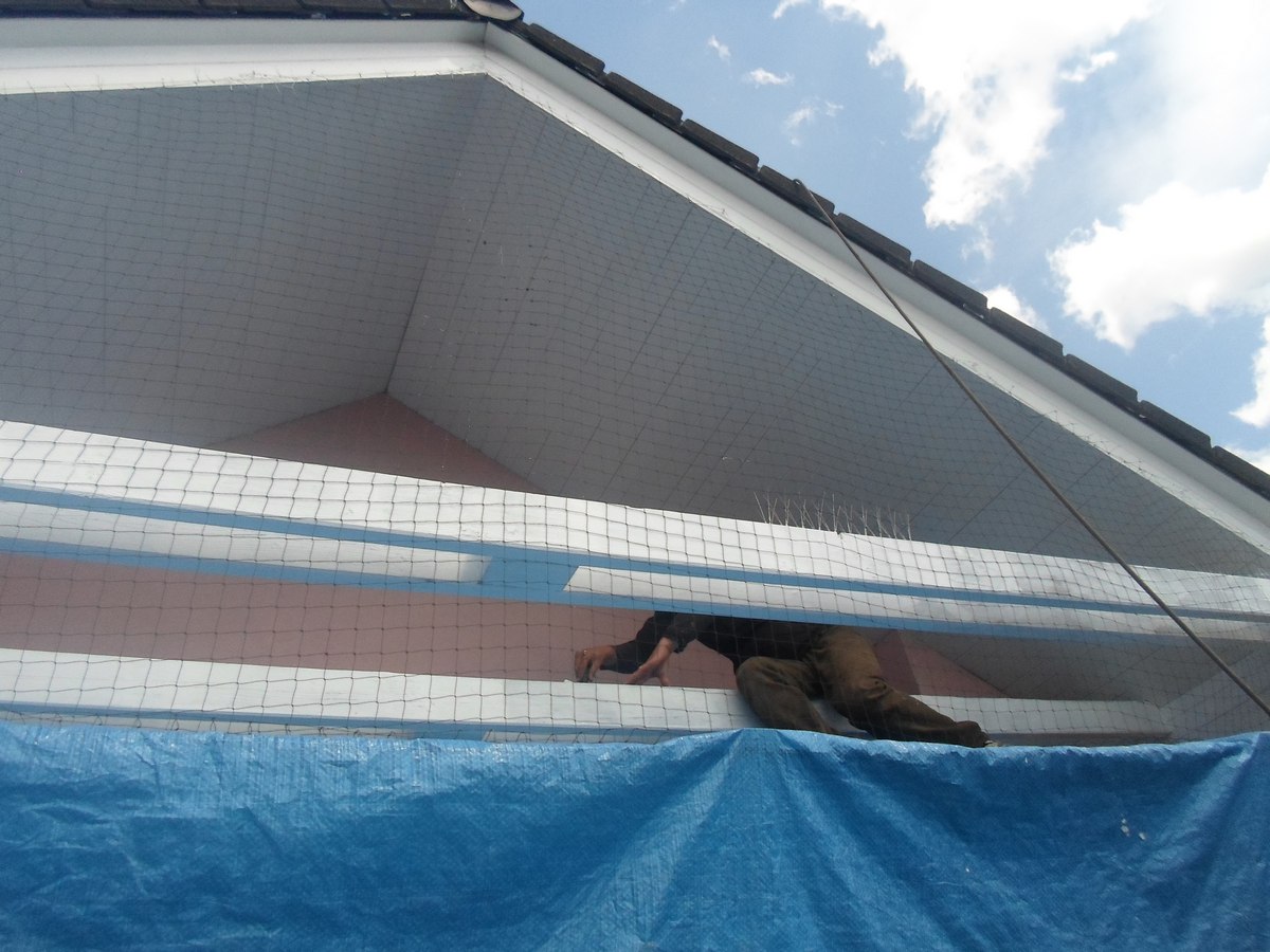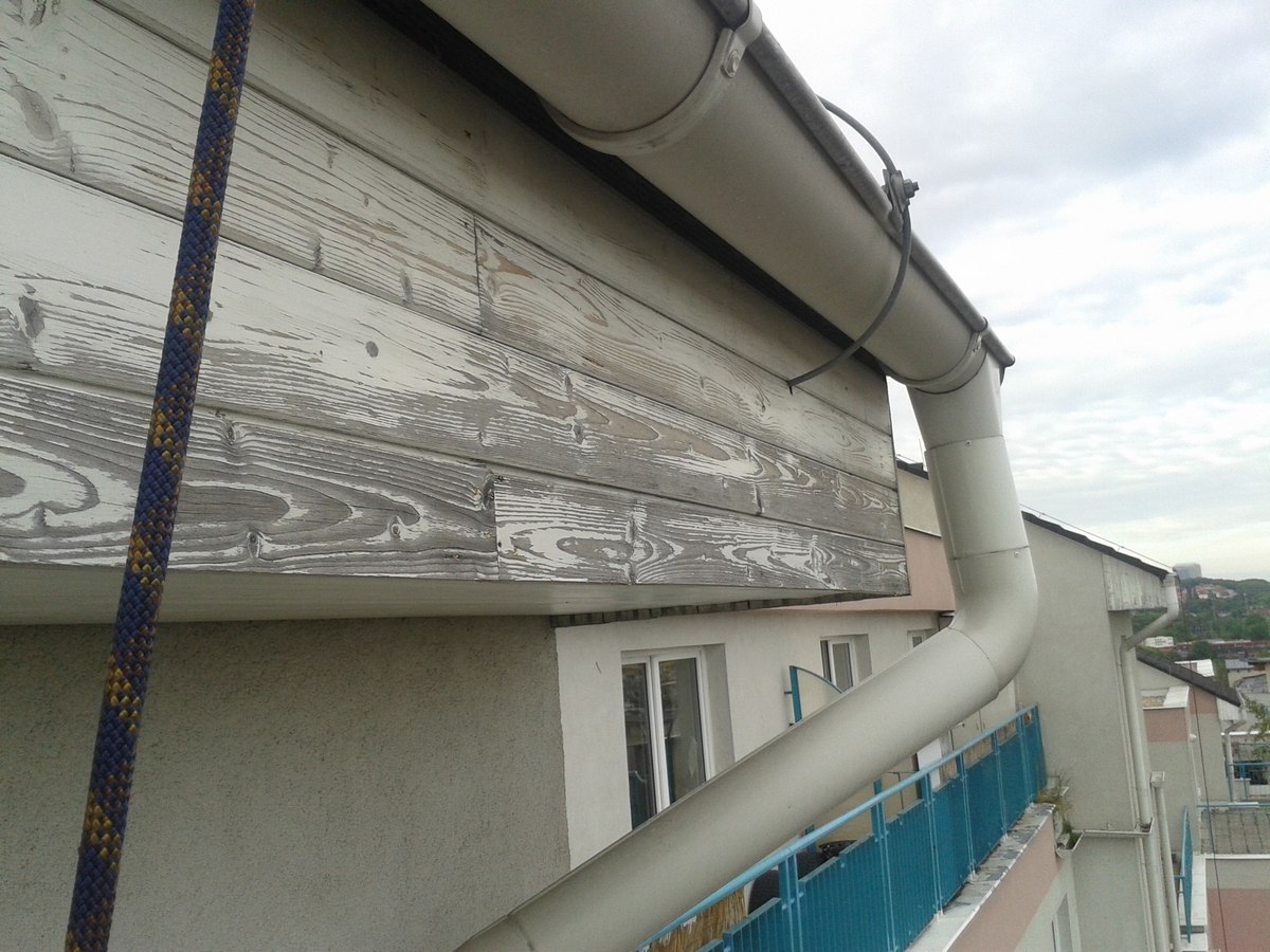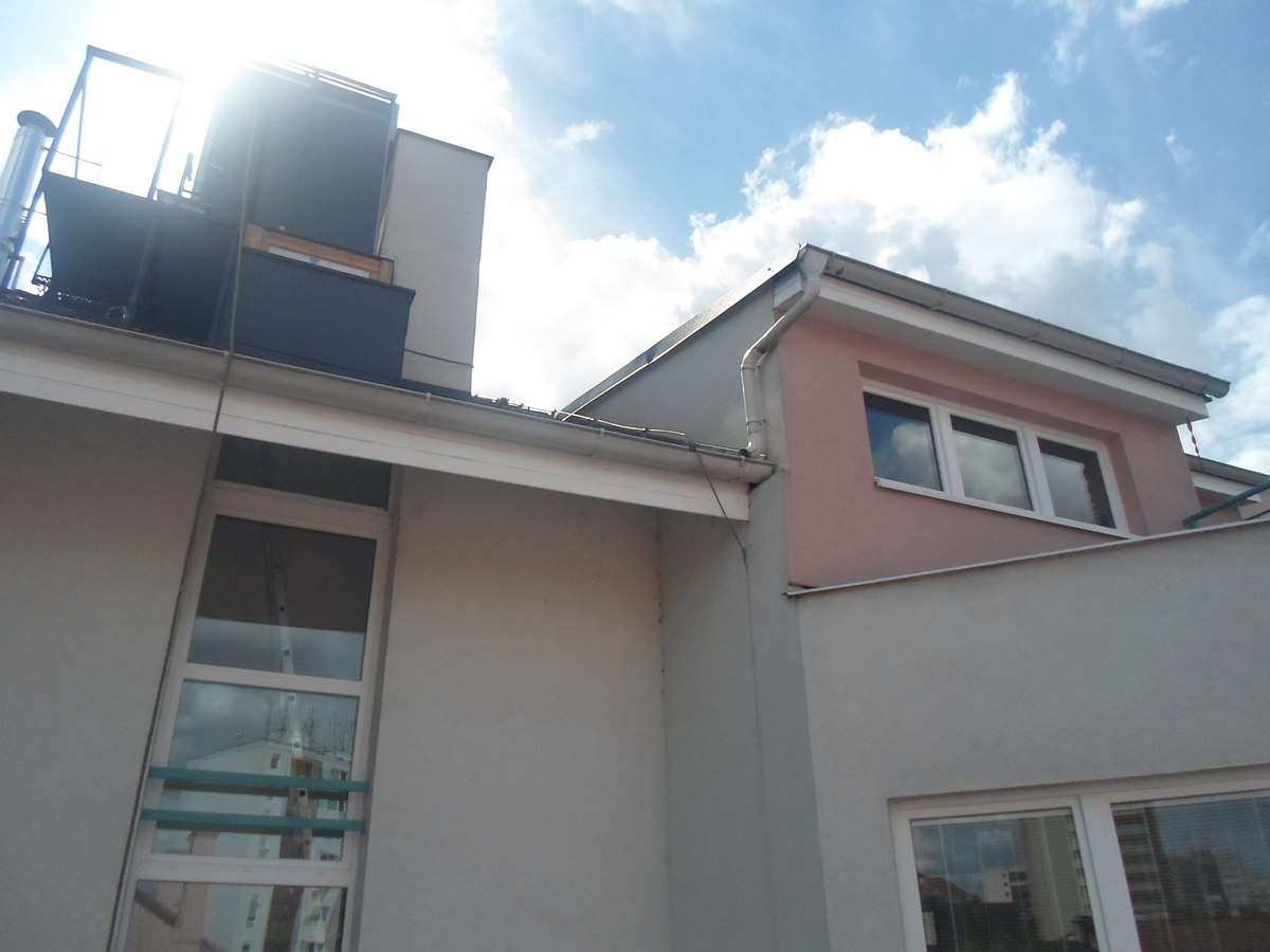 Renovační nátěr alkyd akrylátovou barvou dřevěných konstrukcí střechy pomocí plošin a horolezcké techniky Praha Strašnice