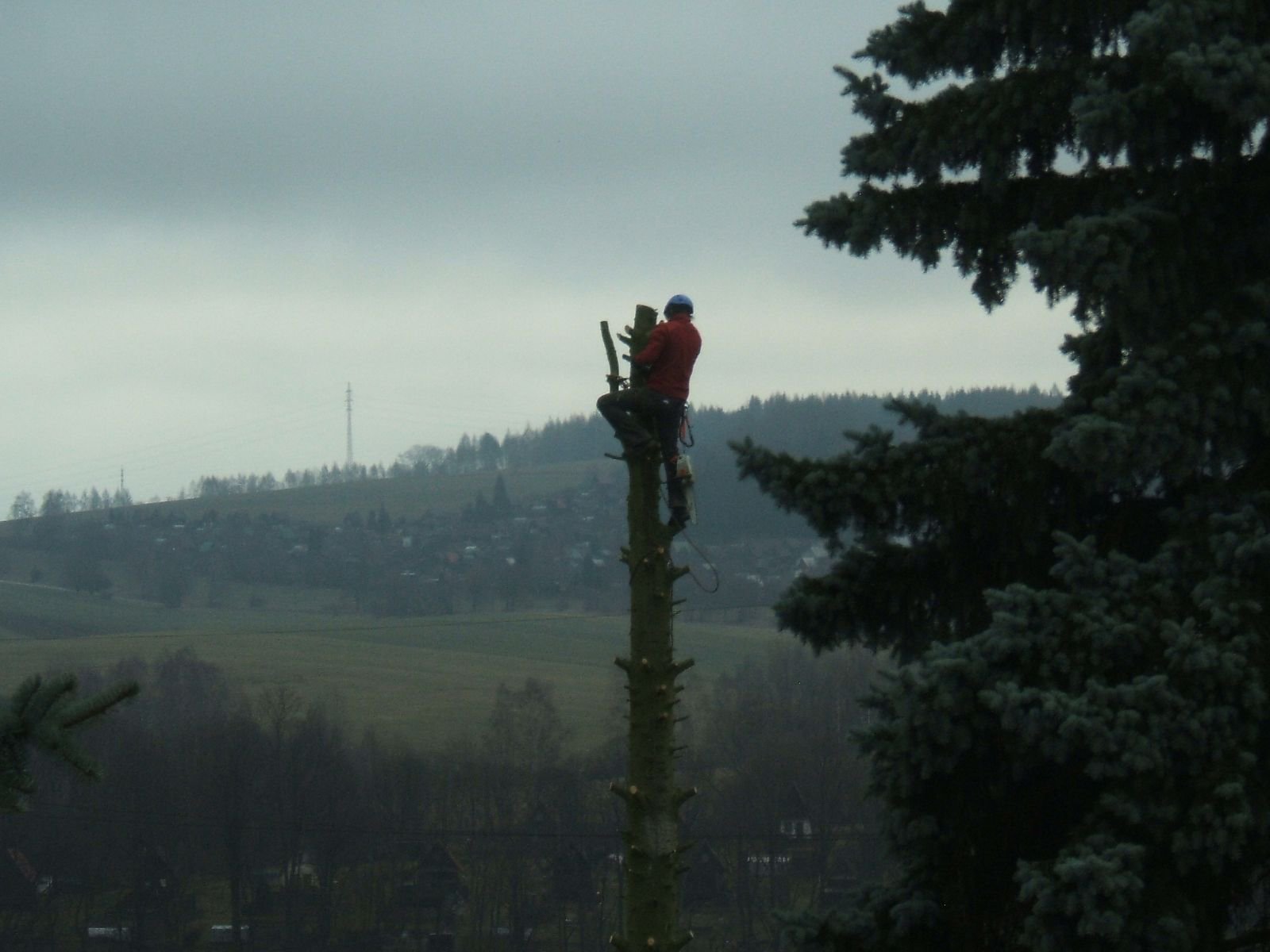provedli jsme rizikové kácení 20m jedle, o průměru v dolní části 90cm, práce byli provedeny postupným kácením kmene