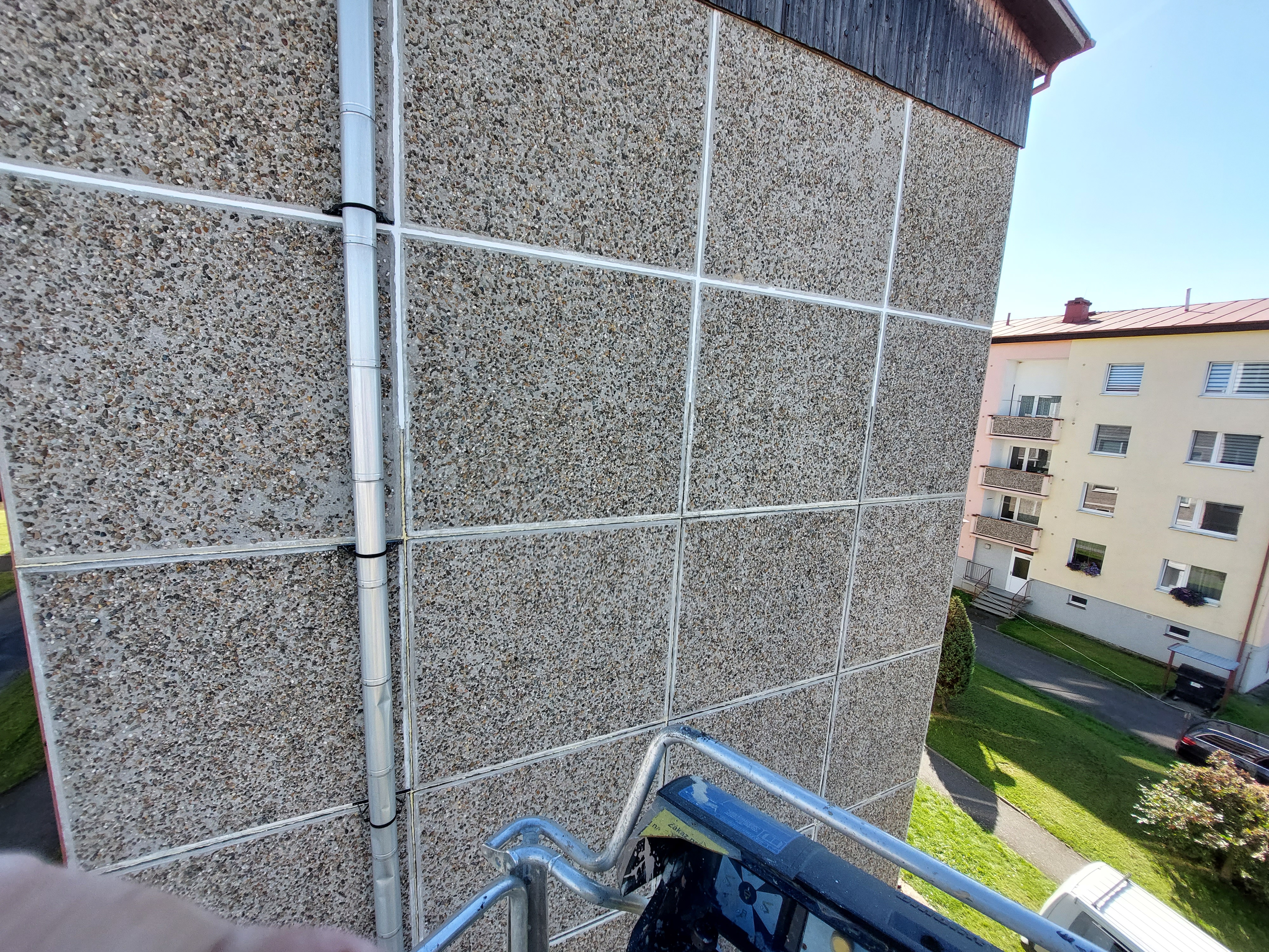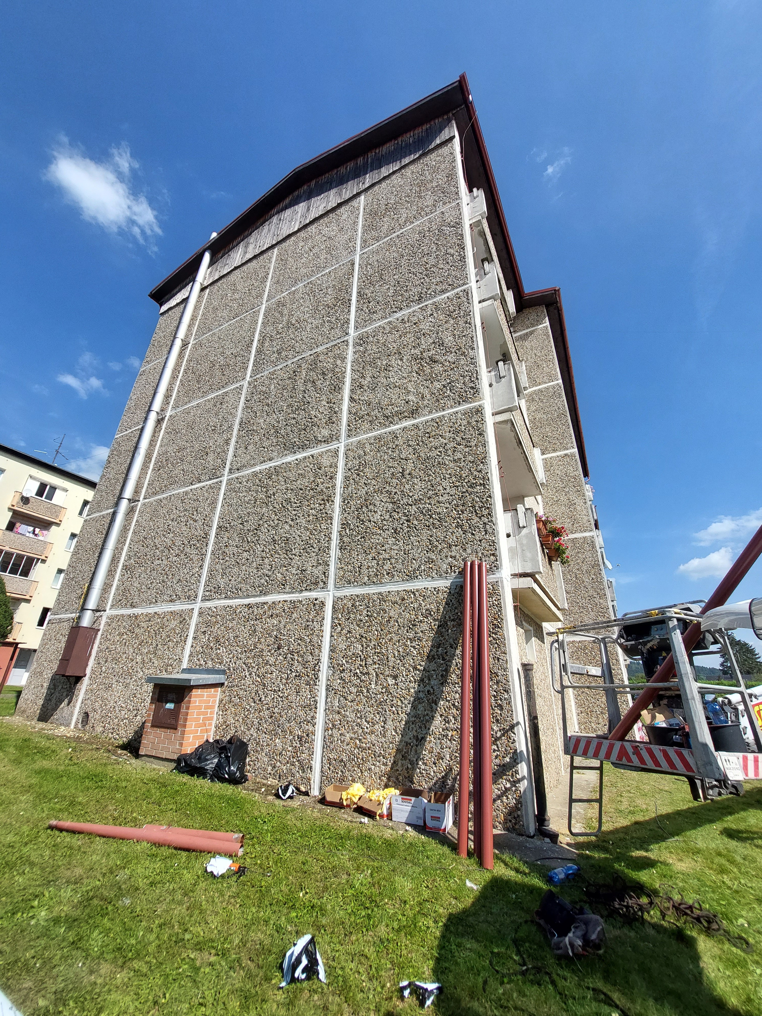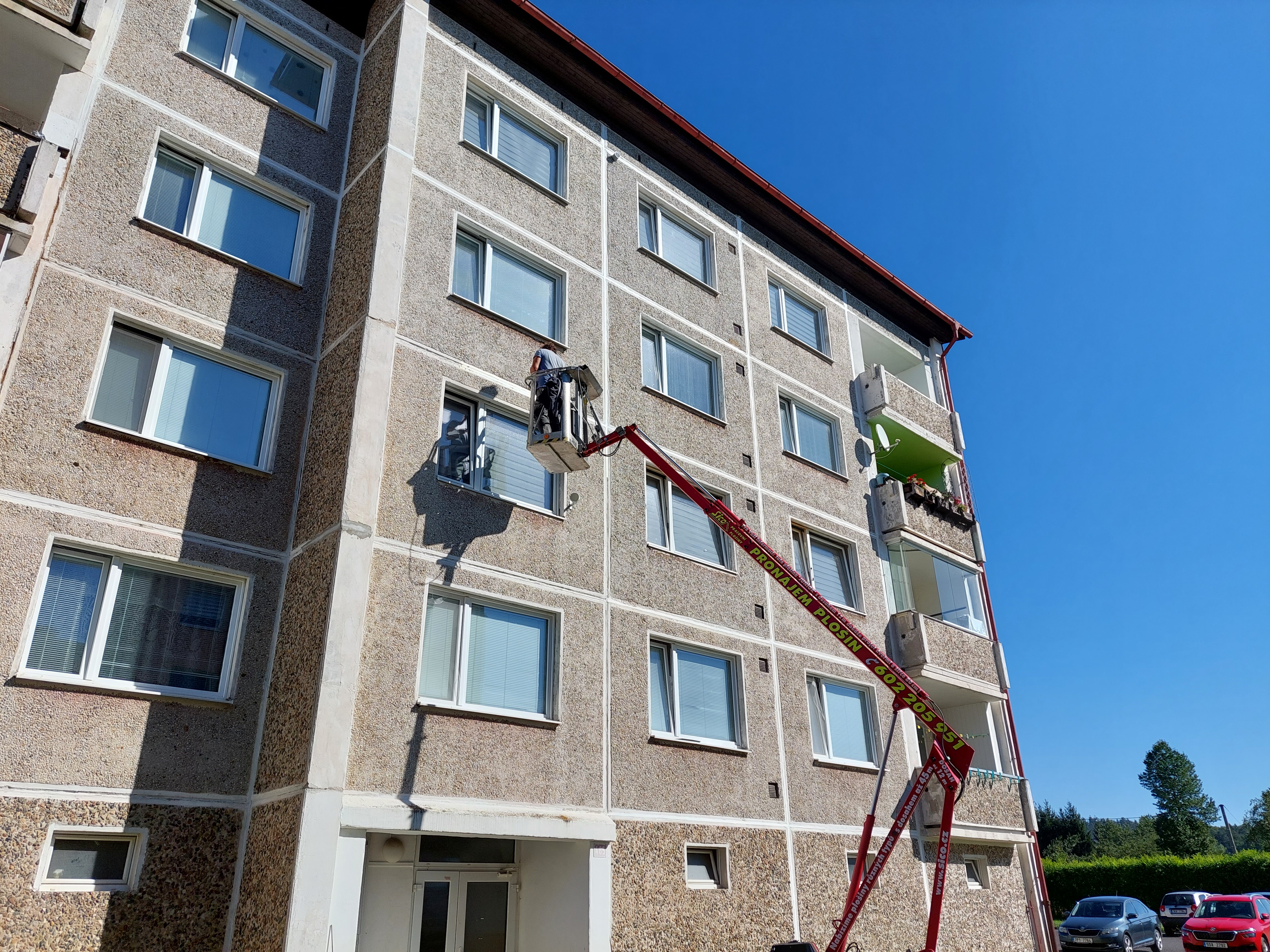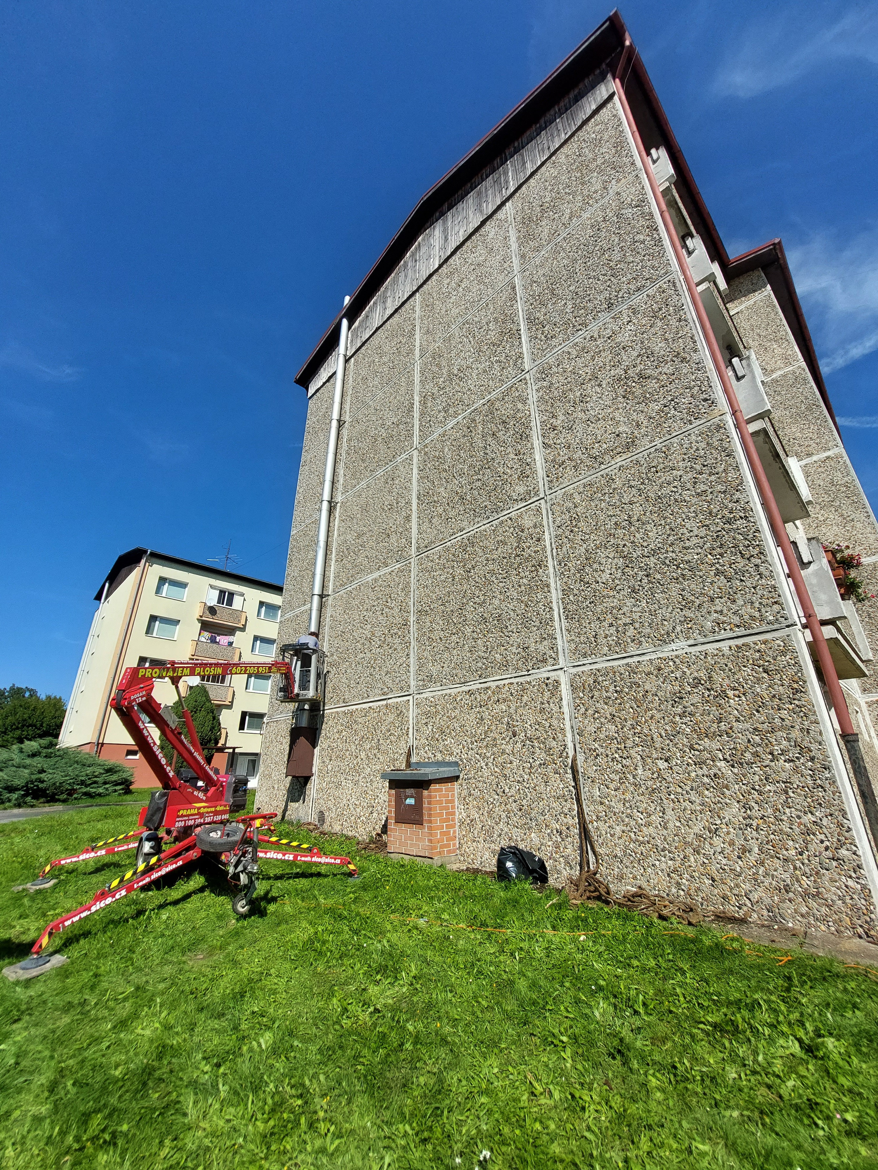 Provedli jsme odstranění starých částí, a vytmelení nových spár 4.patrového domu, práce byli provedeny pomocí vys. plošin.
