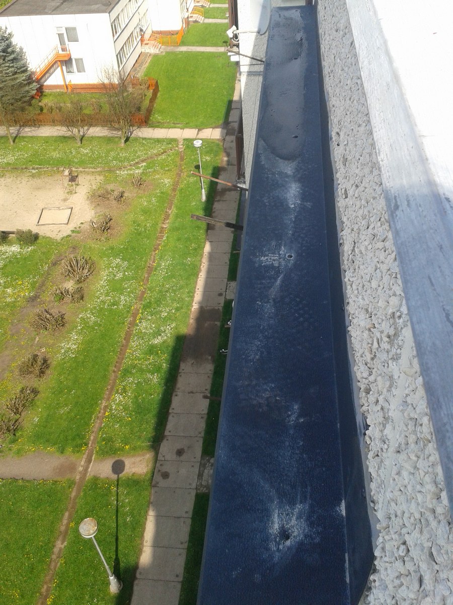 Kompletní oprava betonových stříšek v 8. patře panelového domu a montáž a oplechování stříšky rakouským hliníkem Prefa