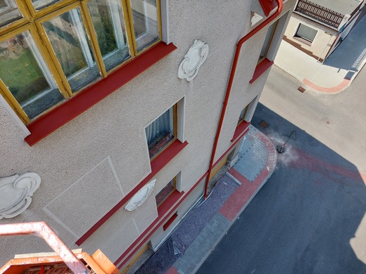 nátěr oplechování střechy, parapetů, žlabů, atik.práce provedeny z pracovní plošiny a horolezeckou…